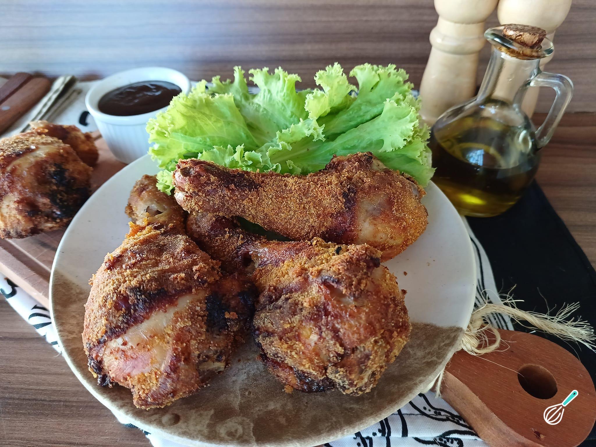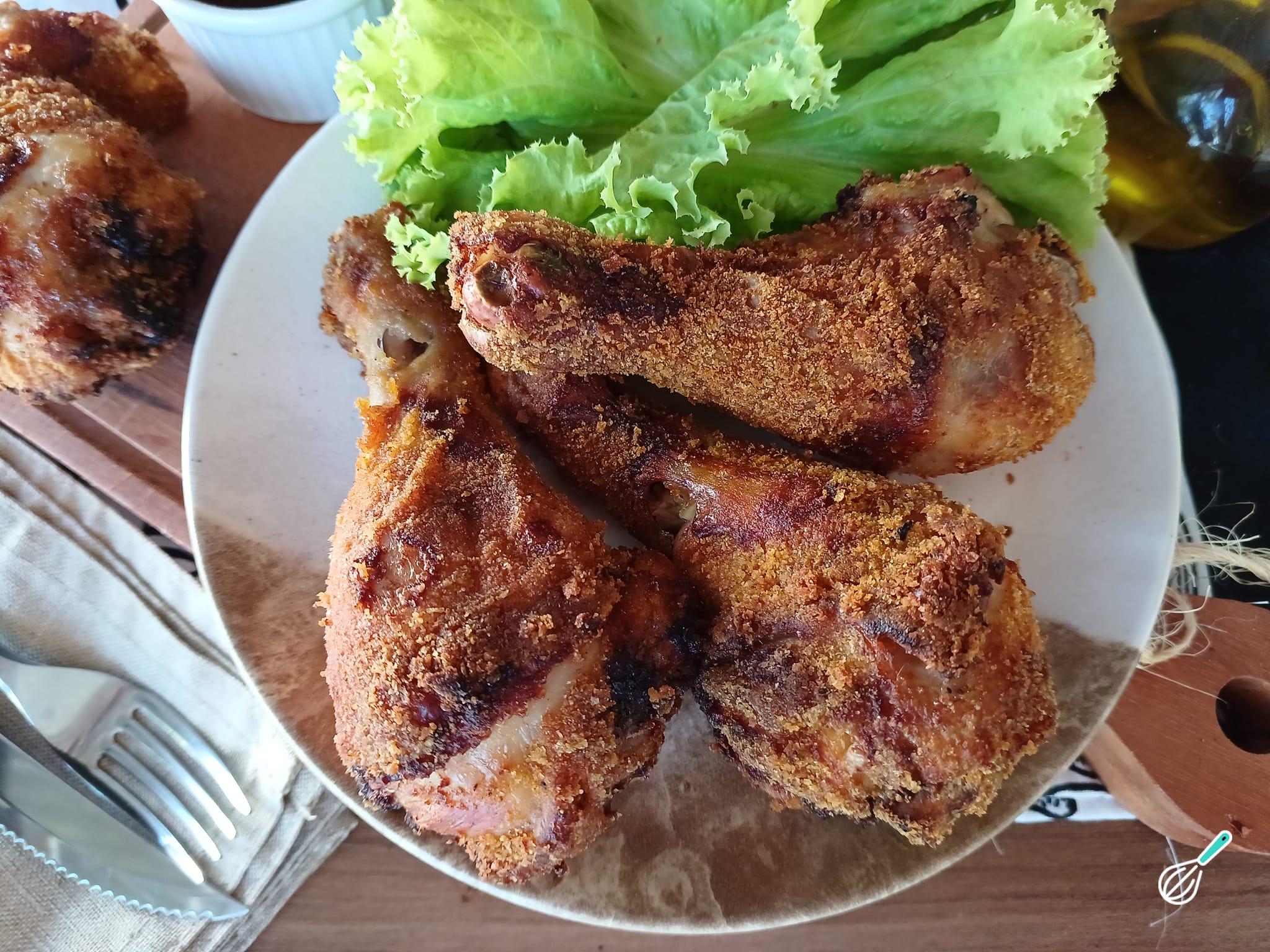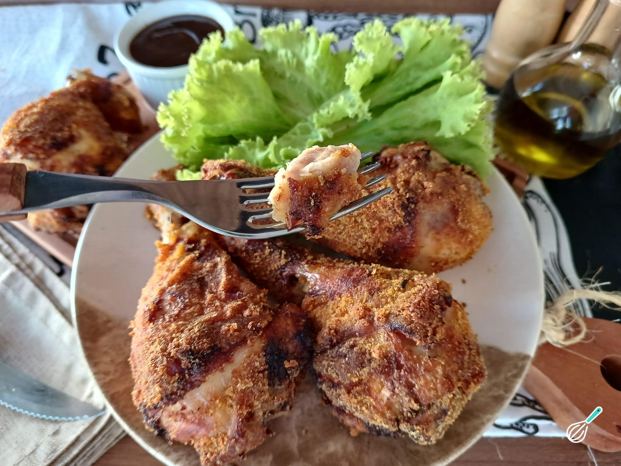 Coxas de frango crocantes que não precisam ser fritas em óleo, são ou não são tentadoras? Além de evitar a sujeira, iremos saborear as coxas de frango de uma maneira mais saudável. livres de fritura!