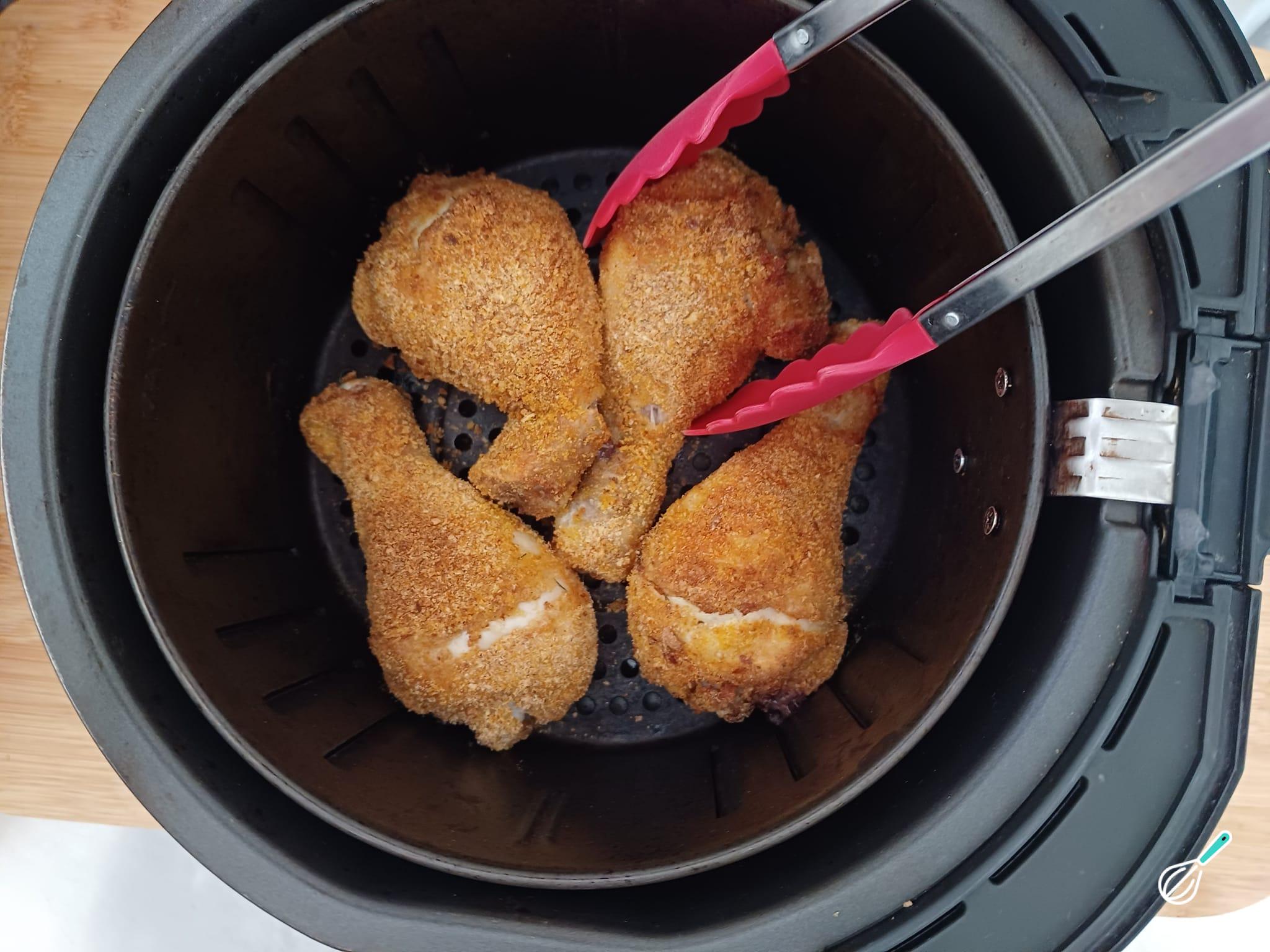 Pronto! Agora você já sabe como preparar coxas empanadas na airfryer sem fritura!