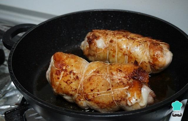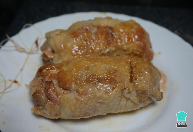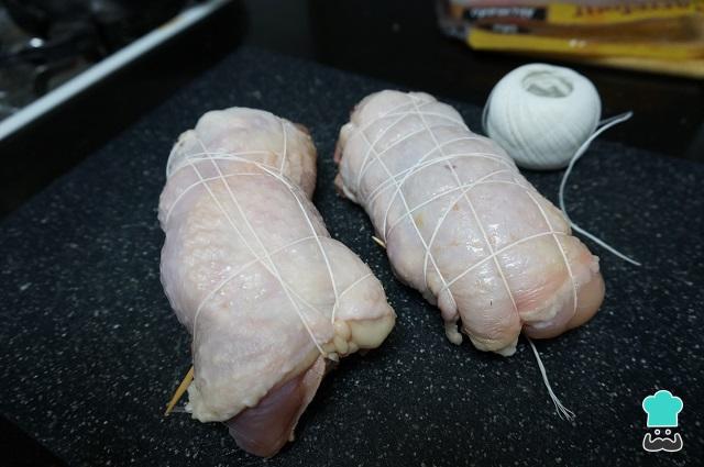 Dica: Não tire a pele das coxas de frango pois ela é importante para conferir sabor e para o recheio não sair.