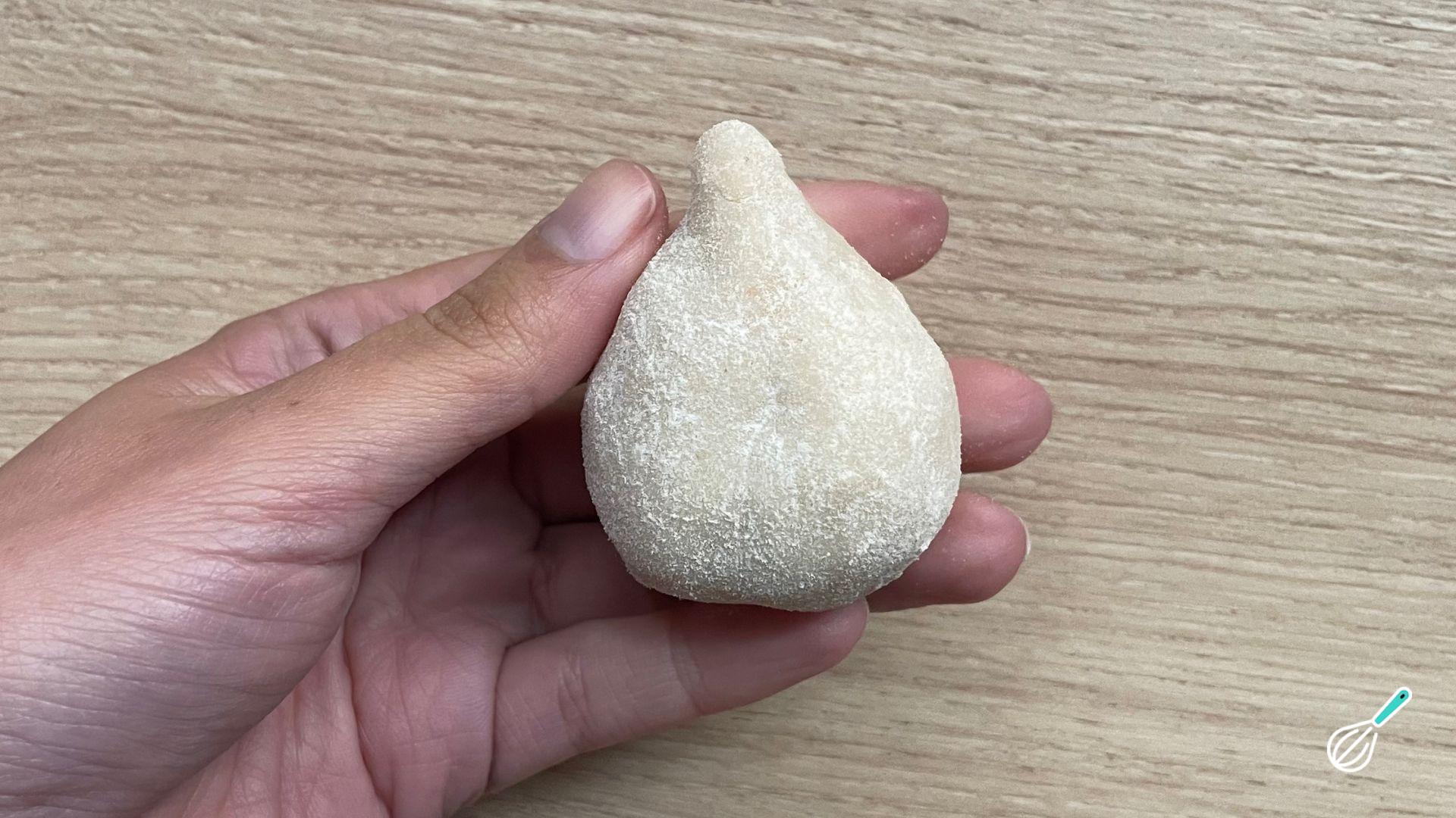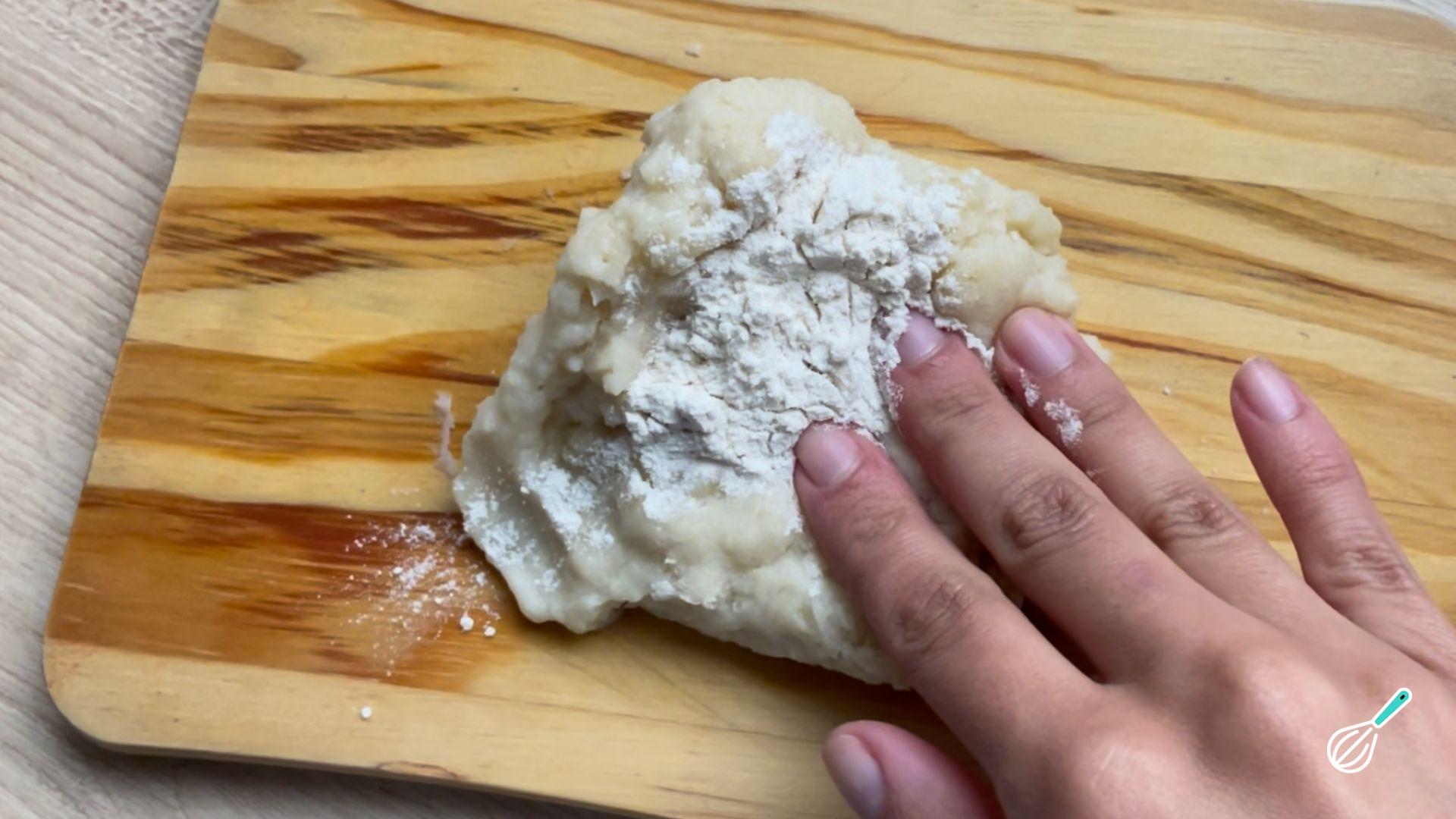 Espere amornar e abra a massa em uma bancada levemente enfarinhada e sove só até ficar lisa.