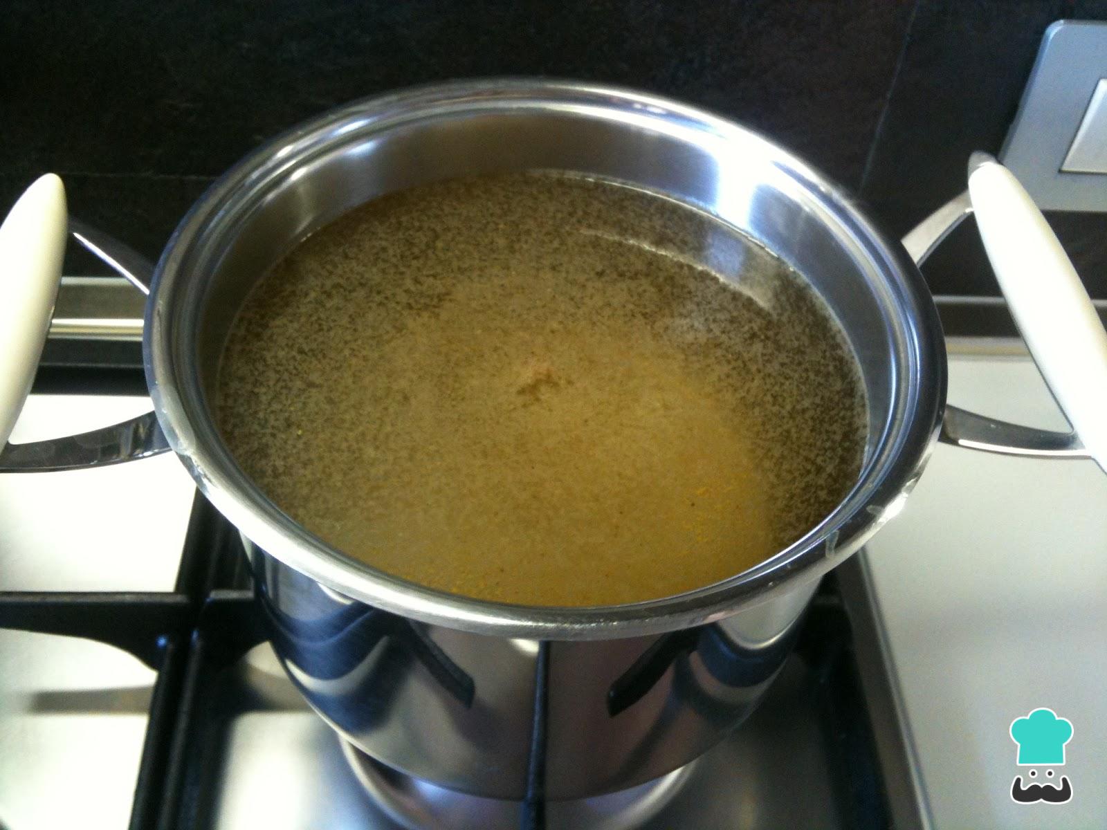 Quando a carne estiver cozinhada (o que demorará cerca de 15-20 minutos), retire junto com o alho e adicione ao caldo a cebola picada e a manteiga. Deixe ferver por 5 minutos.