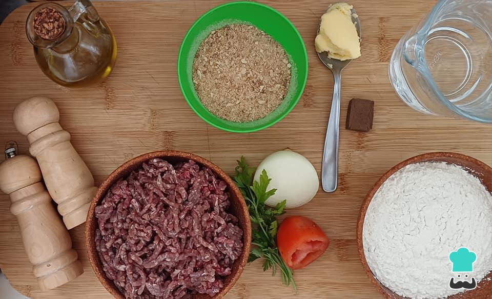 Separe os ingredientes necessários para preparar a receita de coxinha de carne moída.