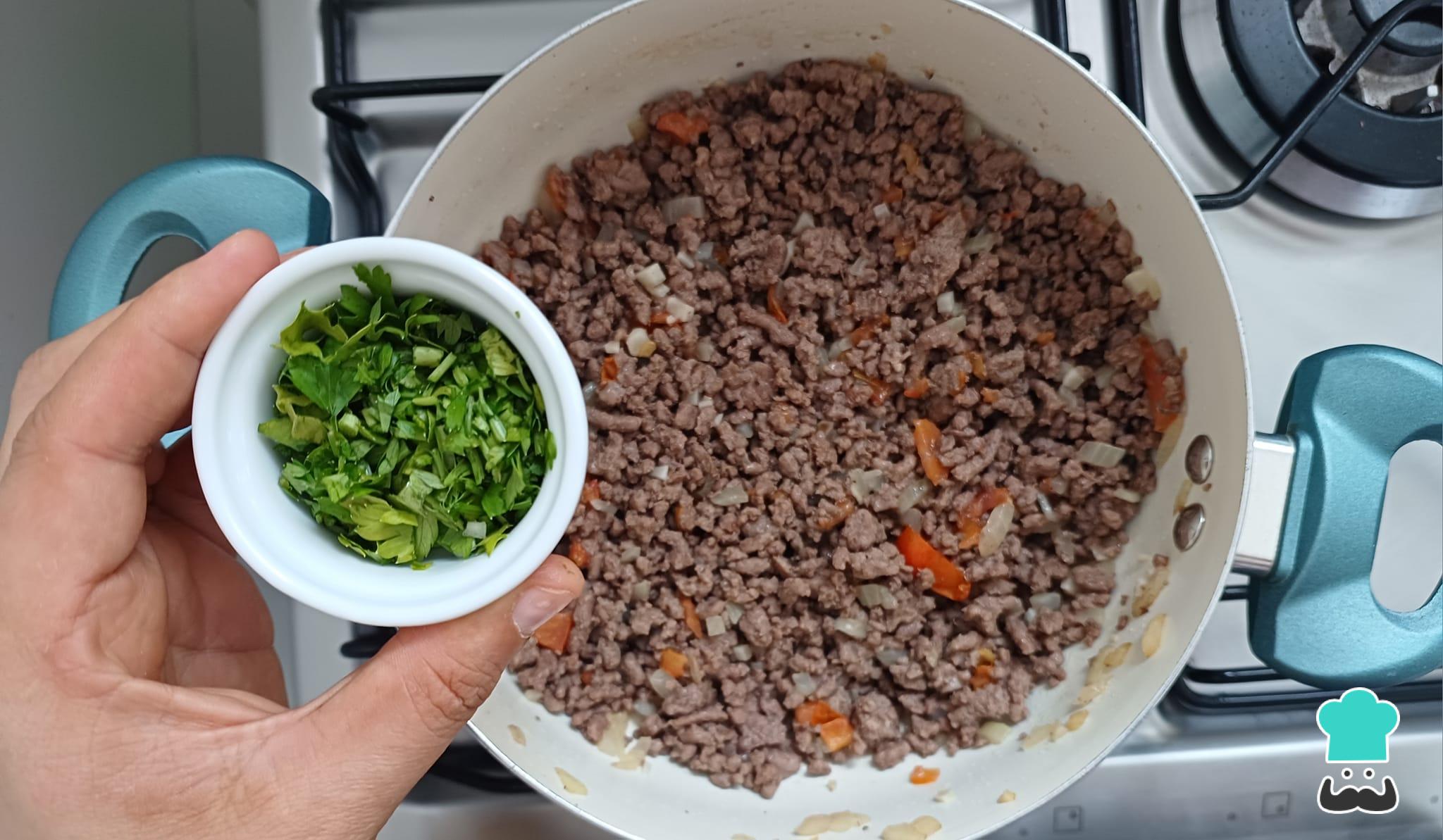Por último, acrescente a salsinha picada e desligue o fogo. Reserve.