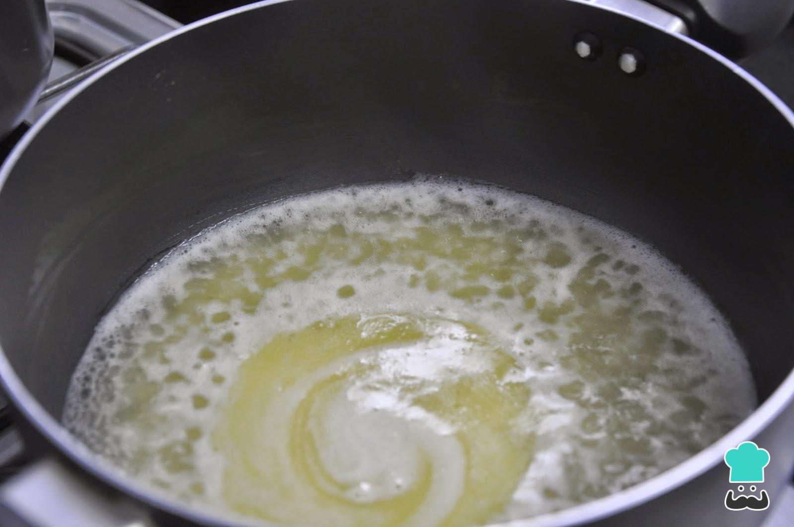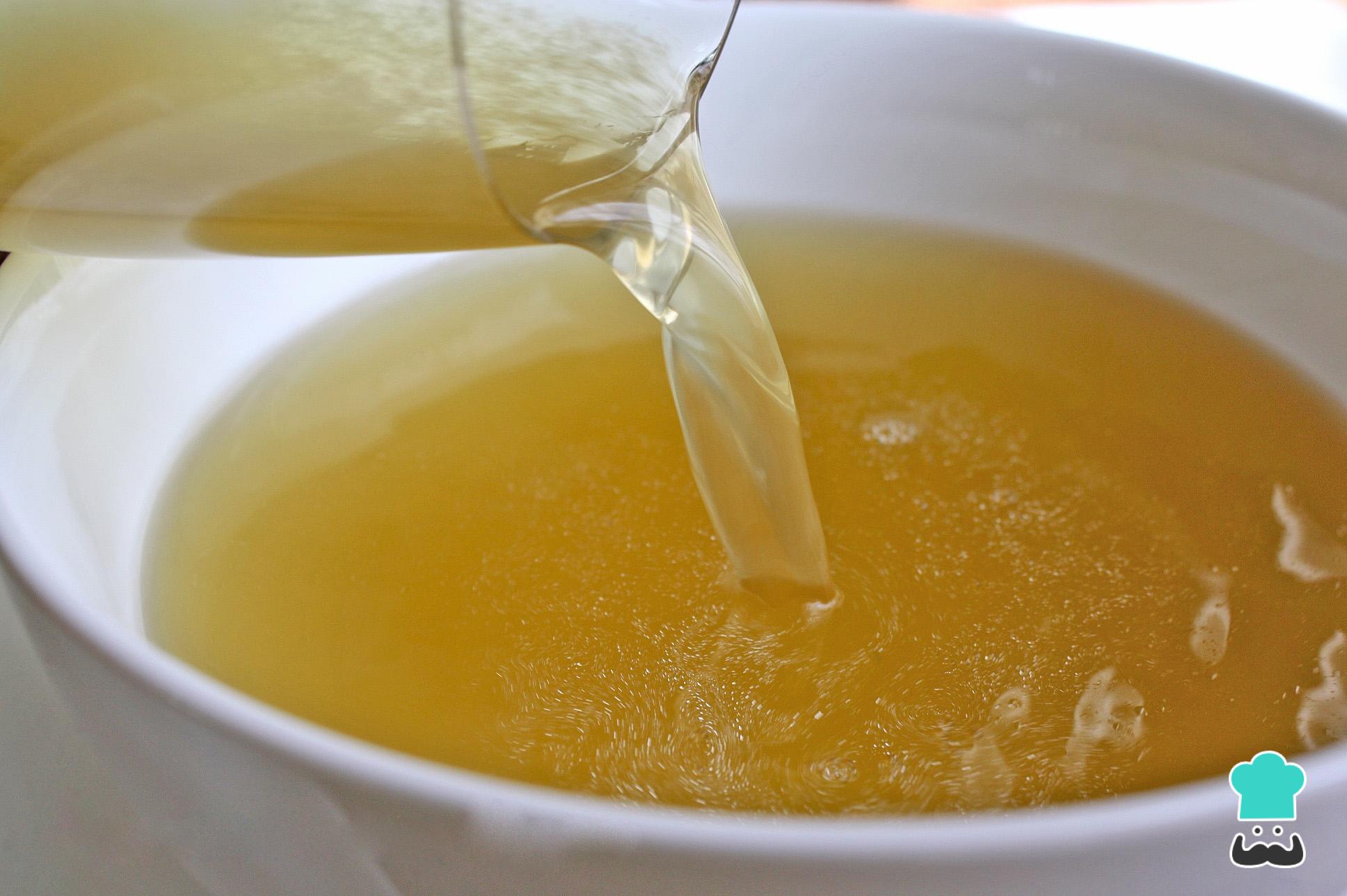 Em uma panela grande coloque o caldo de galinha e a manteiga ou margarina e deixe ferver. Corrija o sal se necessário.