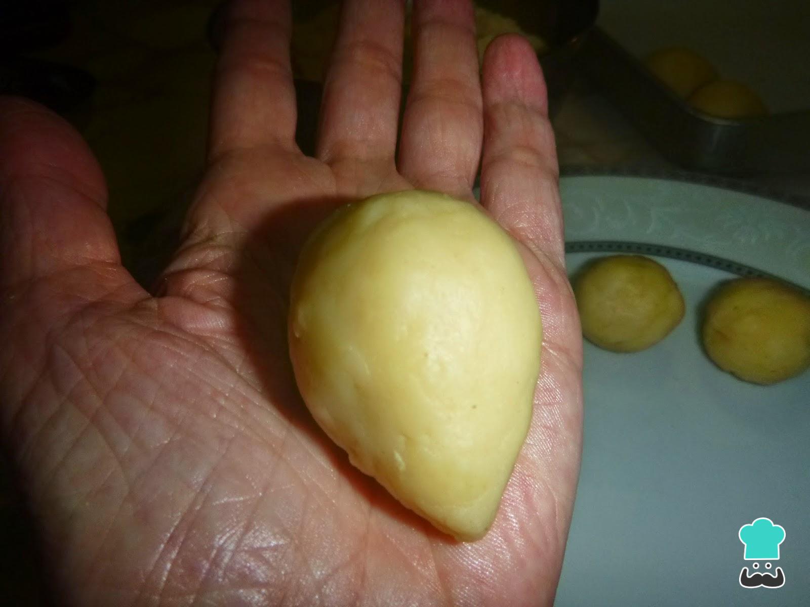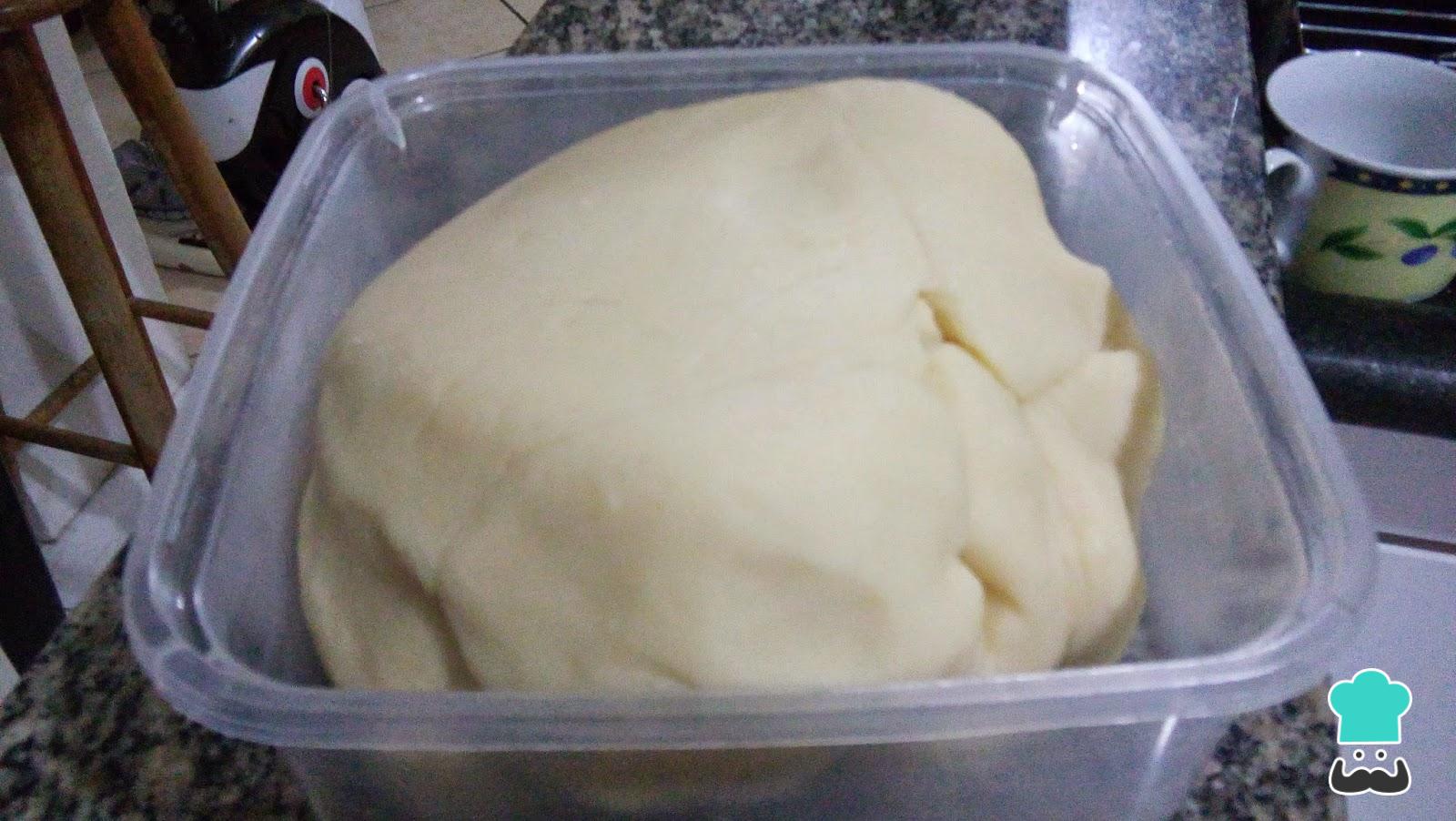 Transfira essa massa de coxinha sem glúten para uma superfície lisa e untada e sove bem durante cerca de 5 minutos. Deixe esfriar.