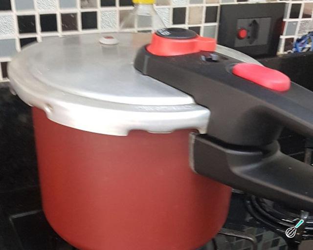 Em uma panela de pressão coloque o frango e encha de água até cobrir o frango. Coloque um tablete de caldo de galinha, tampe e, quando começar a chiar a panela, deixe por 30 minutos cozinhando.