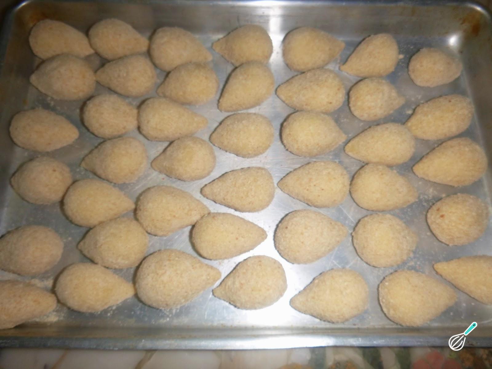 Passe as coxinhas por ovo batido e depois por farinha de rosca e disponha em um tabuleiro de forno. Leve a assar a 200ºC durante 15-20 minutos ou até ficarem douradas.