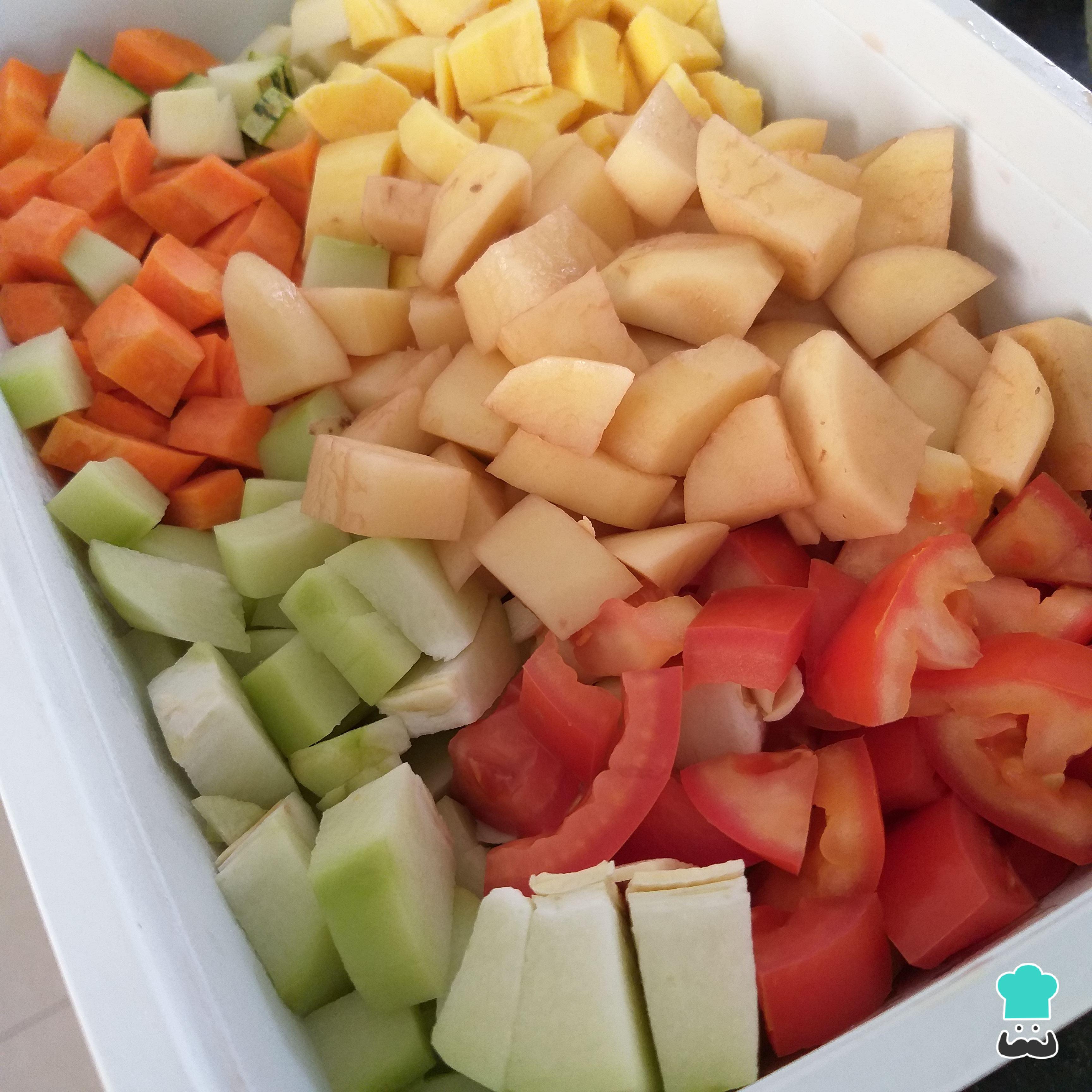 Dica: não esqueça de descascar os legumes que contêm casca, como é o caso da cebola, alho, batata, mandioquinha e cenoura.