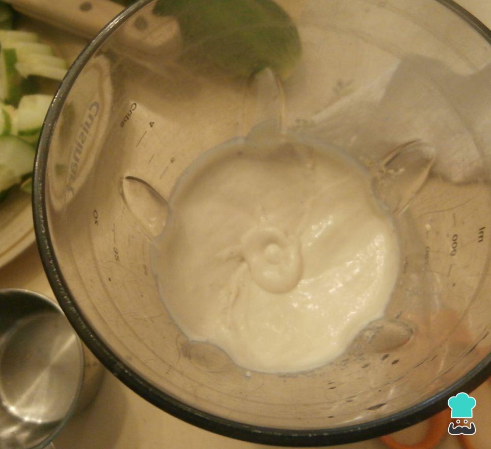Coloque uma colher de margarina, e duas colheres de creme de leite no liquidificador. Adicione o leite talhado do passo anterior, bata por 3 minutos e o cream cheese está pronto.