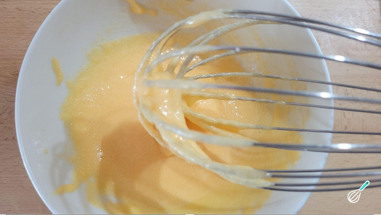 Bata bem com um batedor de arame até ter uma textura mais cremosa e de cor mais clara.