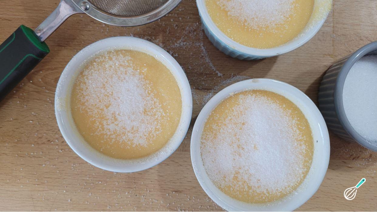 Use um maçarico, se tiver um, para criar a casquinha crocante caraterística. Caso não tenha um, como eu, use a parte de trás de uma colher ou um objeto metálico. Esquente muito bem no fogo, tomando cuidado para não se queimar e coloque diretamente sobre o açúcar para caramelizar.
