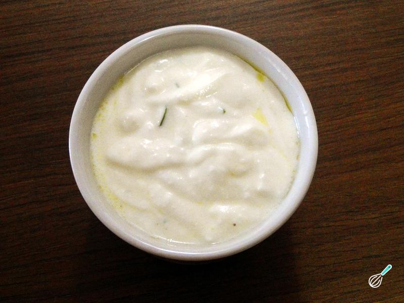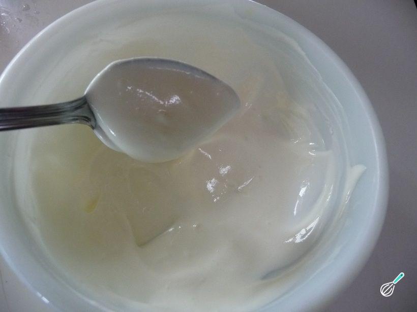 A única coisa que você tem que fazer para preparar o creme azedo caseiro é misturar o suco de limão com o iogurte. Misture bem para que o suco fique bem integrado.