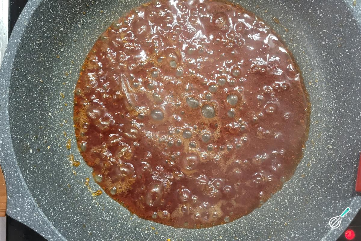 Fique sempre atento para não queimar e quando derreter e chegar na consistência de caramelo, pode mexer. Não deixe o caramelo muito escuro, pois ele continua cozinhando no forno ao assar o creme.