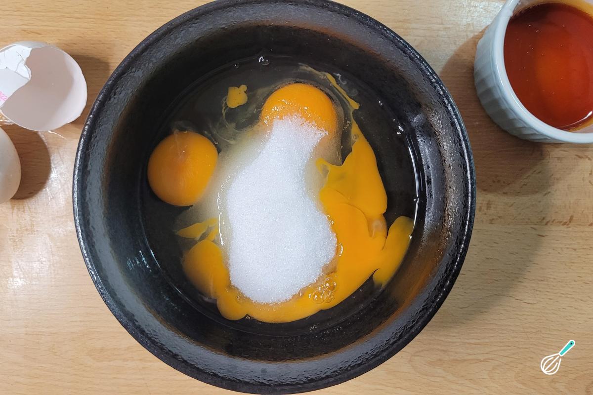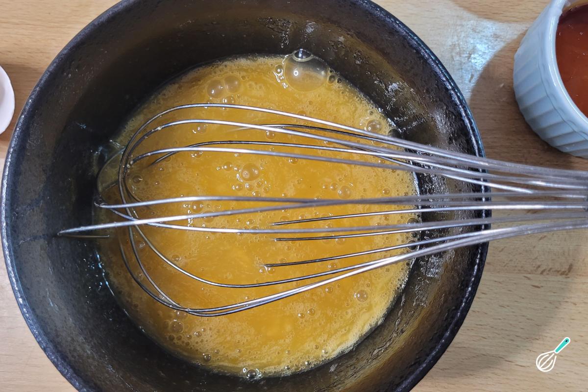 Bata bem com um batedor de arame até formar um creme claro e aerado.