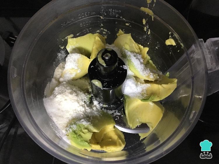 Comece por bater no processador o abacate com o xylitol.