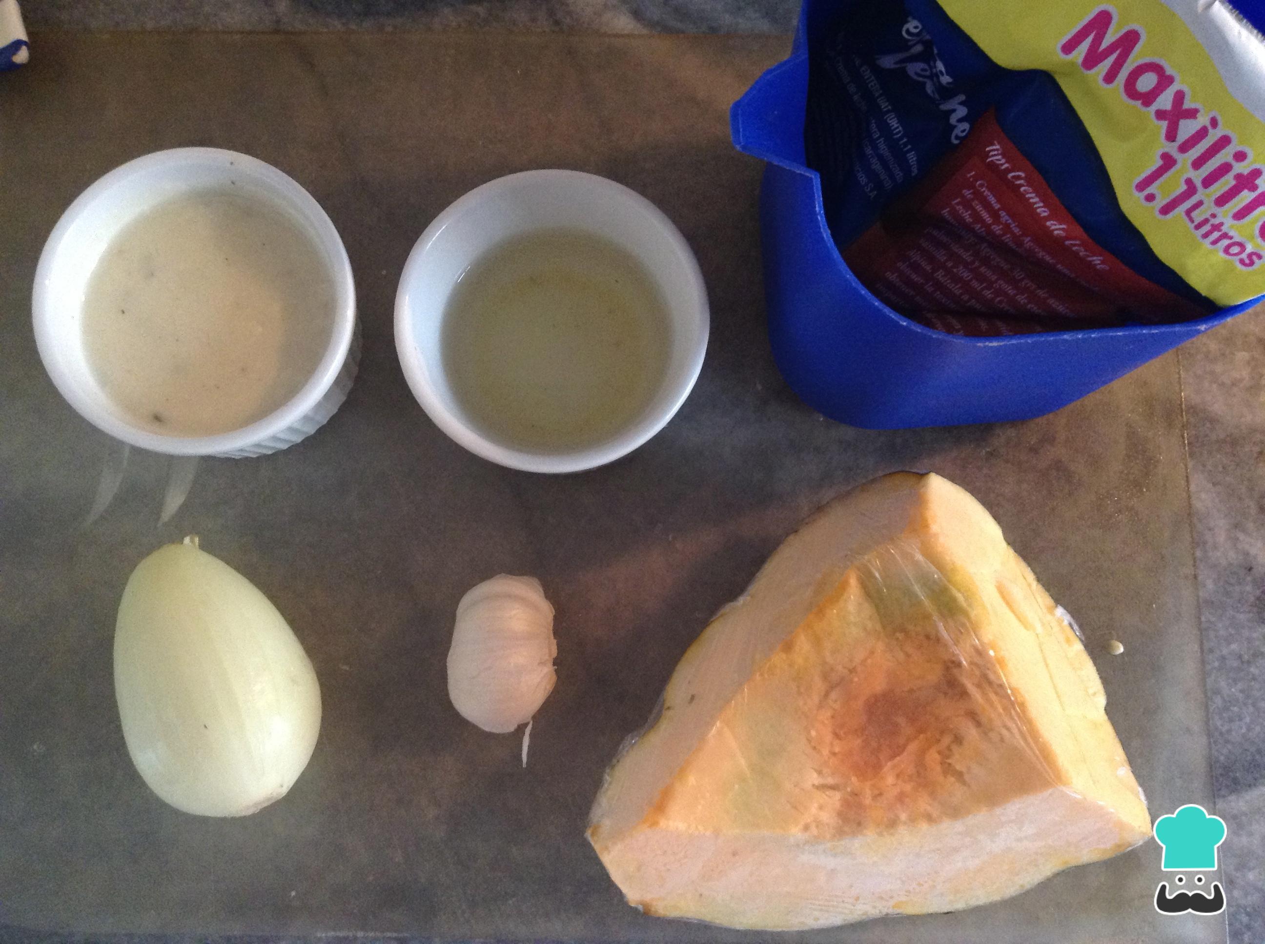 Para preparar este creme de abóbora comece por reunir os ingredientes necessários.