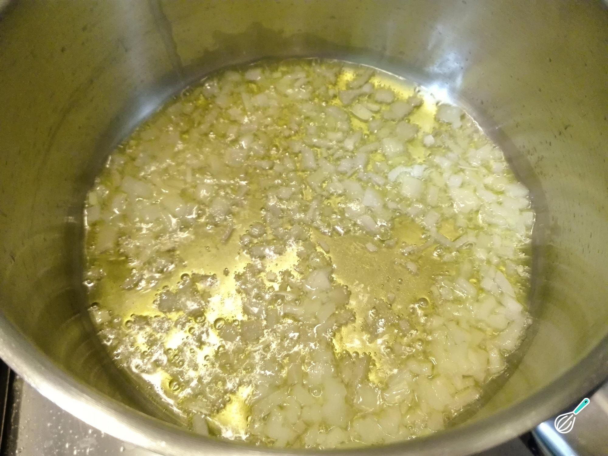 Quando a abóbora estiver pronta, derreta a manteiga em uma panela, acrescente a cebola e o alho-poró e deixe cozinhar até ficarem macios.