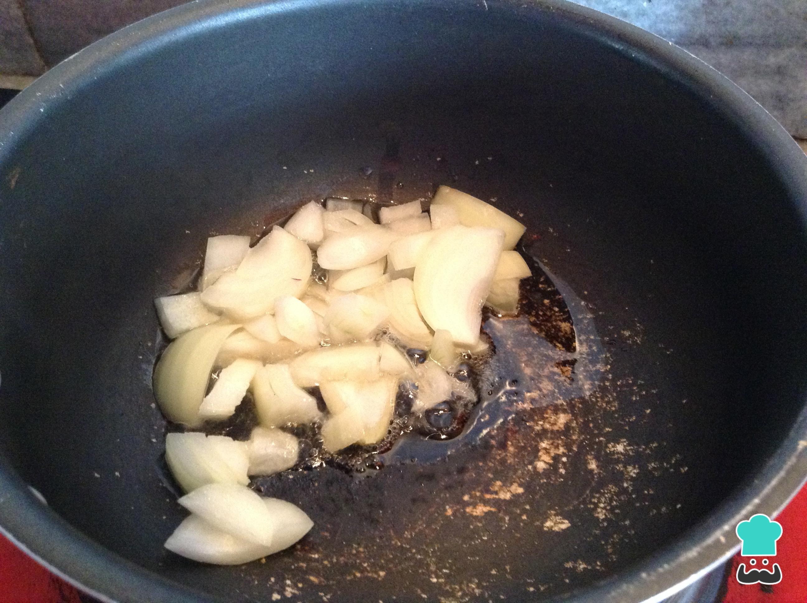Leve uma panela ao fogo médio com um pouco de manteiga e a cebola cortada em pedaços.