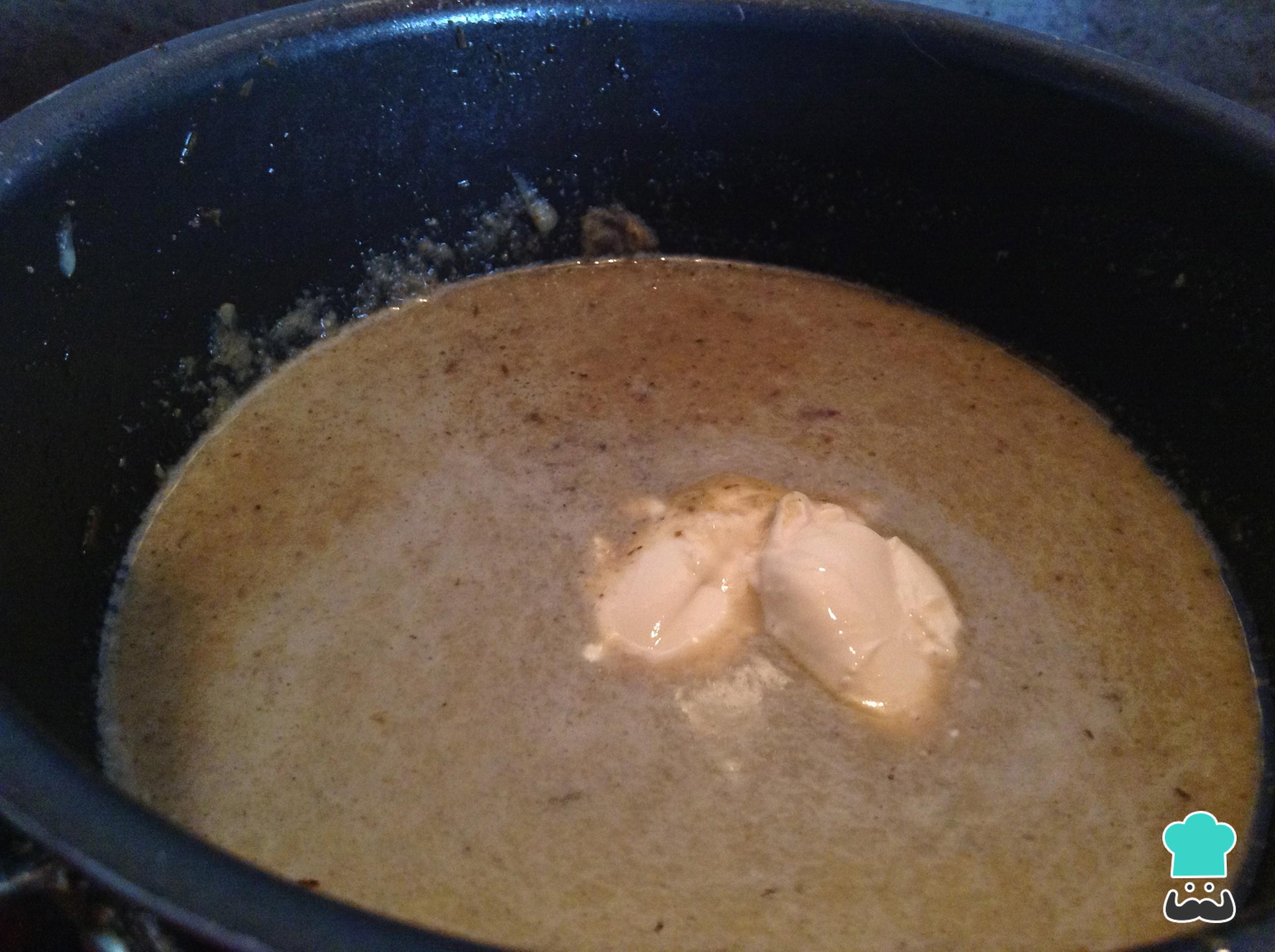 Adicione três colheres de sopa de creme de leite, mexa para misturar bem e desligue após cinco minutos, para não cortar o creme.