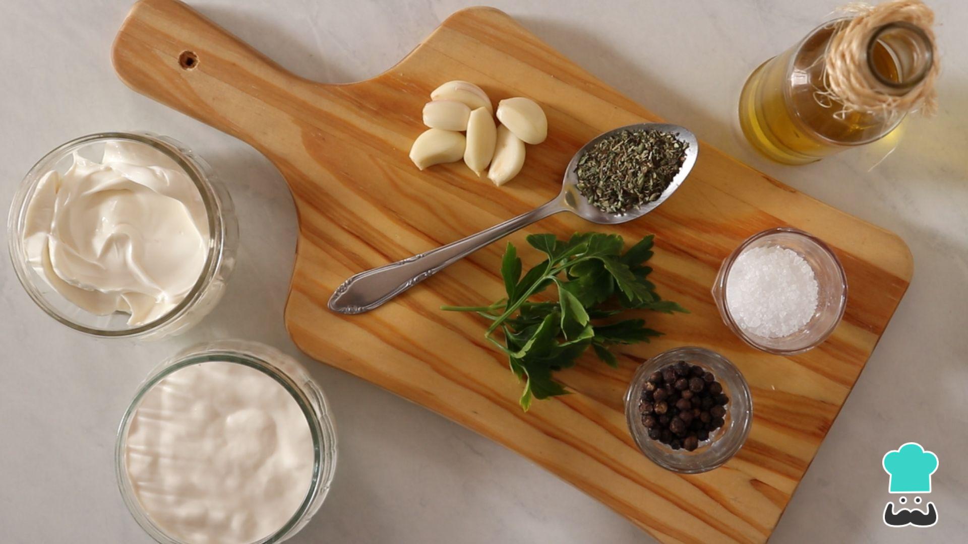 Separe os ingredientes do seu creme de alho. Adicione mais ou menos dentes de alho de acordo com o seu gosto.