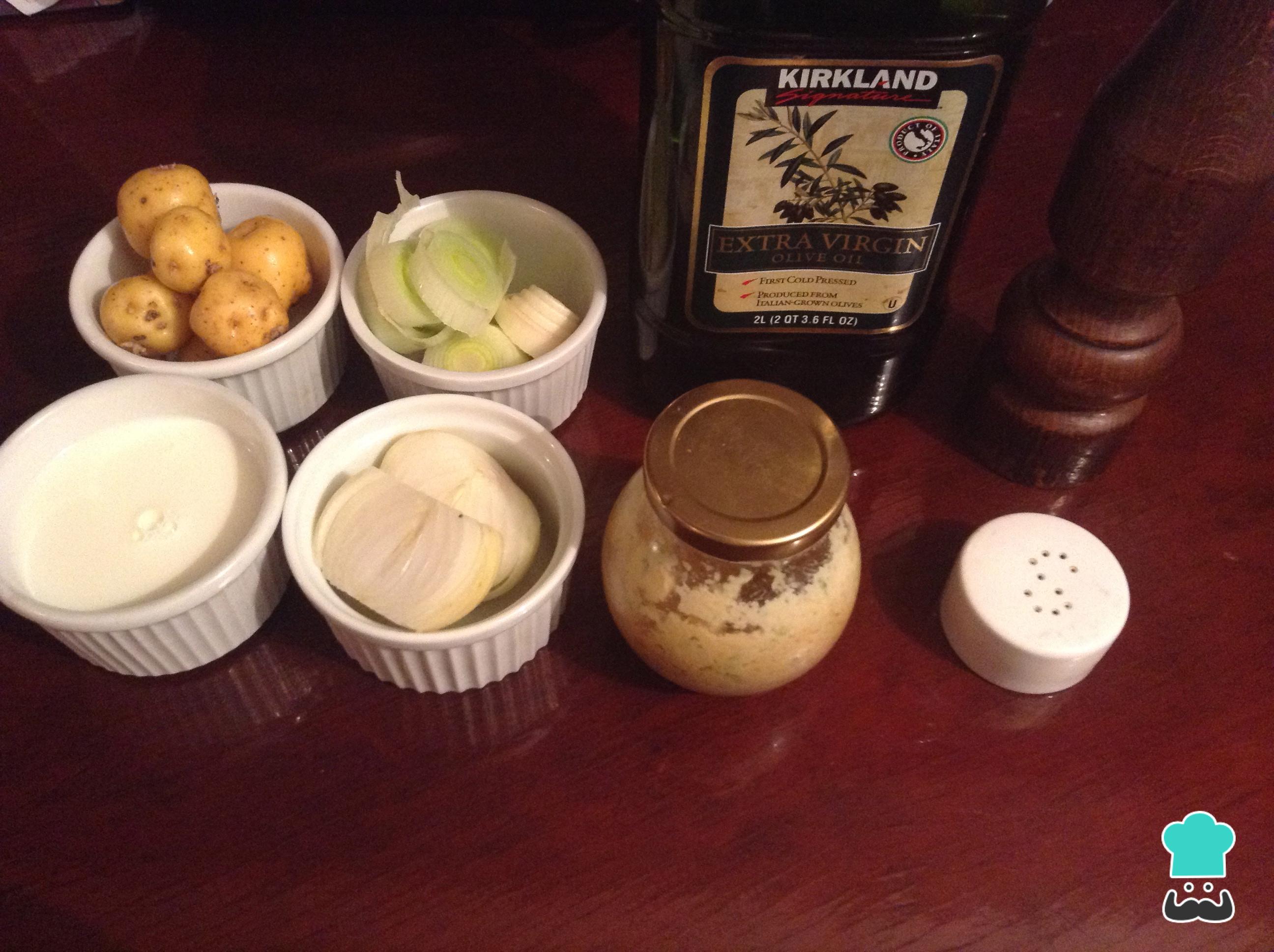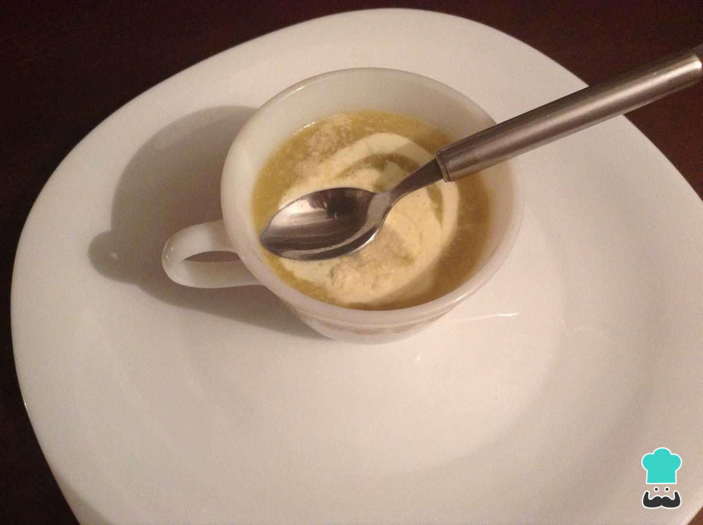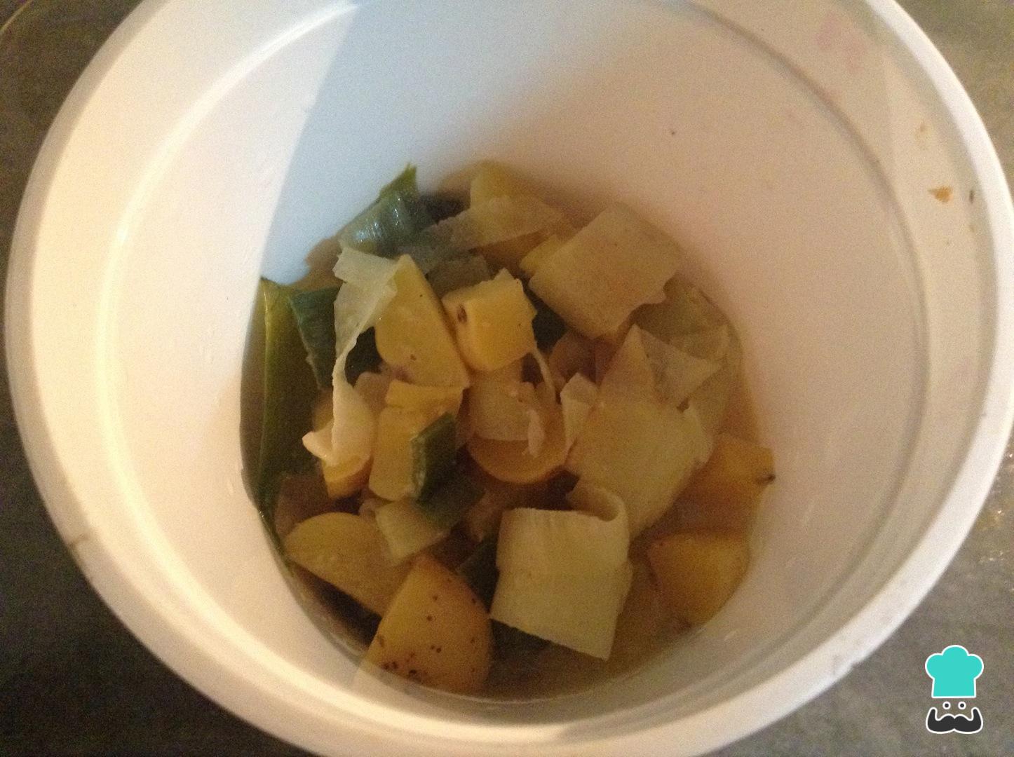 Bata os ingredientes do creme de alho-poró light no liquidificador ou com um mixer, de forma a obter uma mistura bem homogênea.