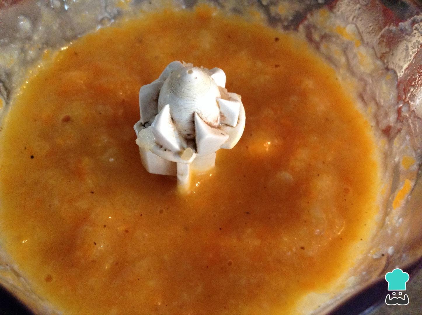 Após o passo anterior, bata tudo muito bem no liquidificador ou processador de alimentos, até obter uma mistura cremosa e sem grumos.