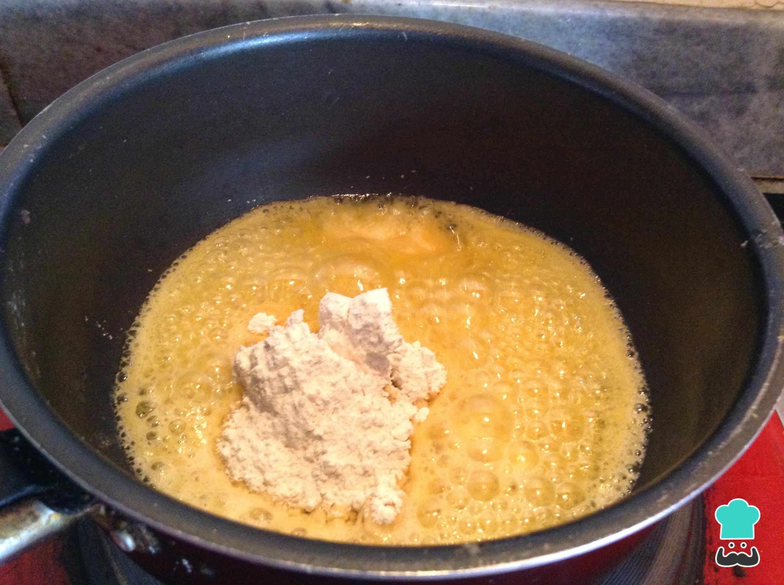Coloque a manteiga e a farinha em uma panela e leve ao fogo médio mexendo para formar uma pasta.