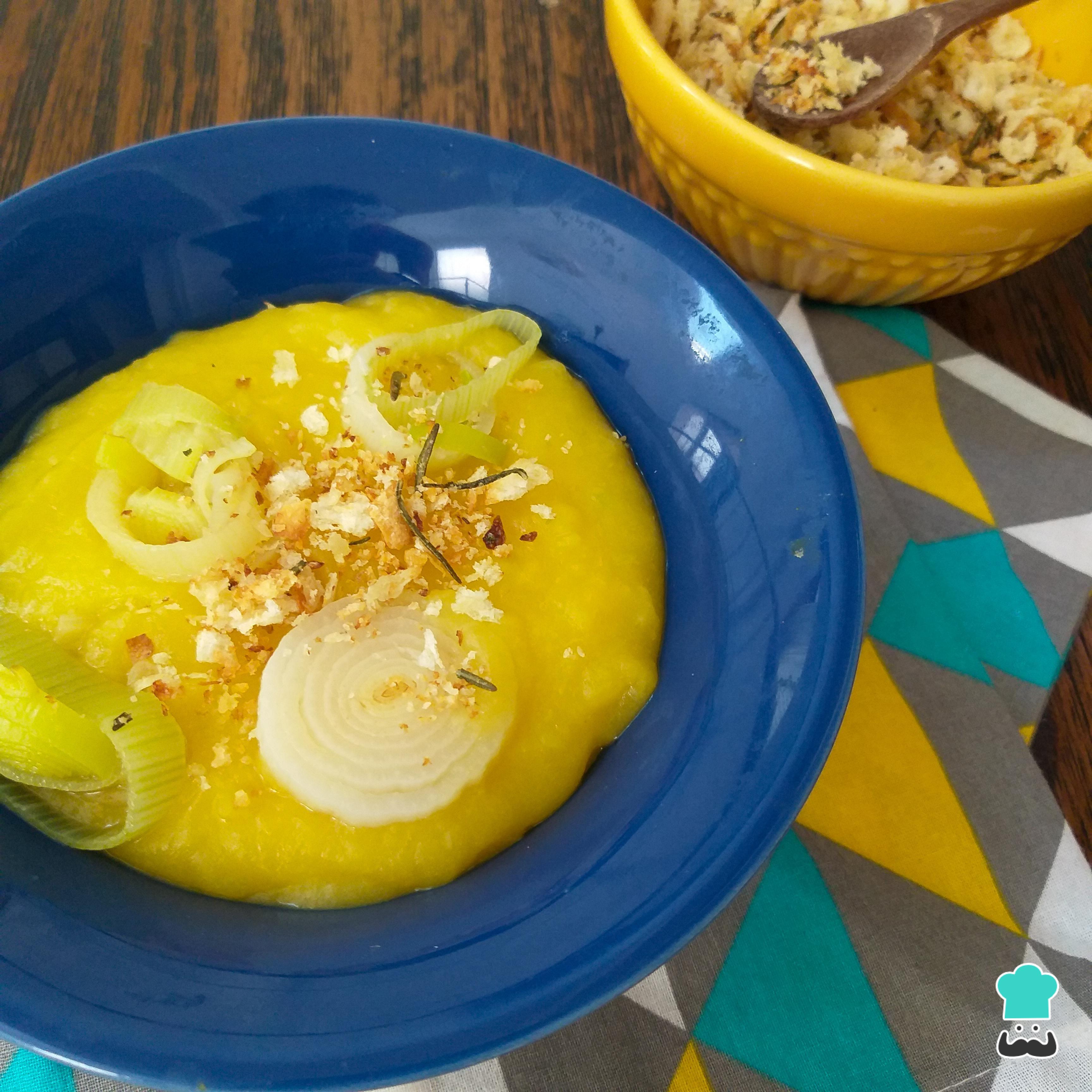 Essa receita de creme de batata baroa com alho poró combina muito bem com a farofa de pão aqui do TudoReceitas.
