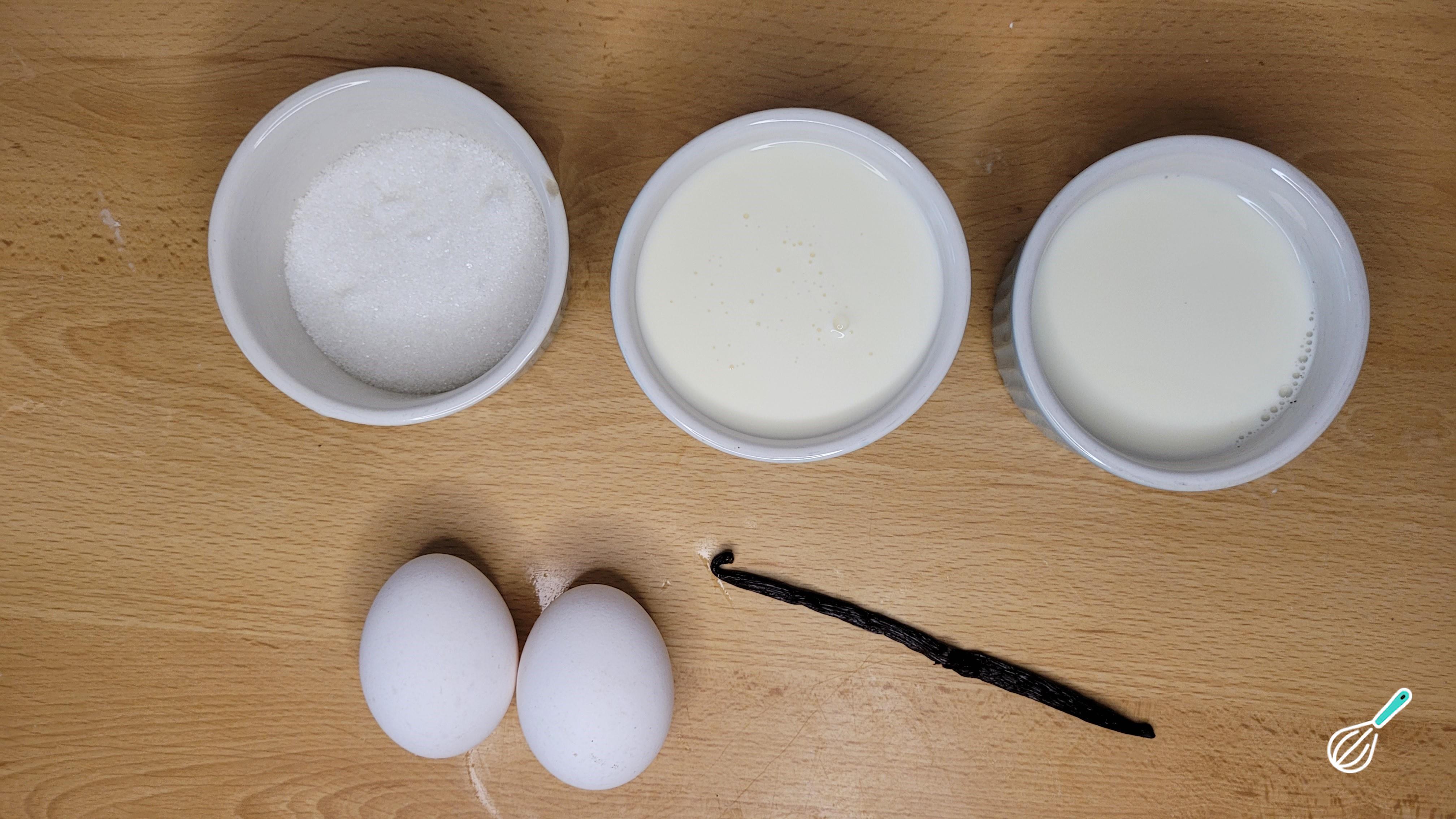 Comece separando todos os ingredientes necessários para fazer o creme de baunilha.
