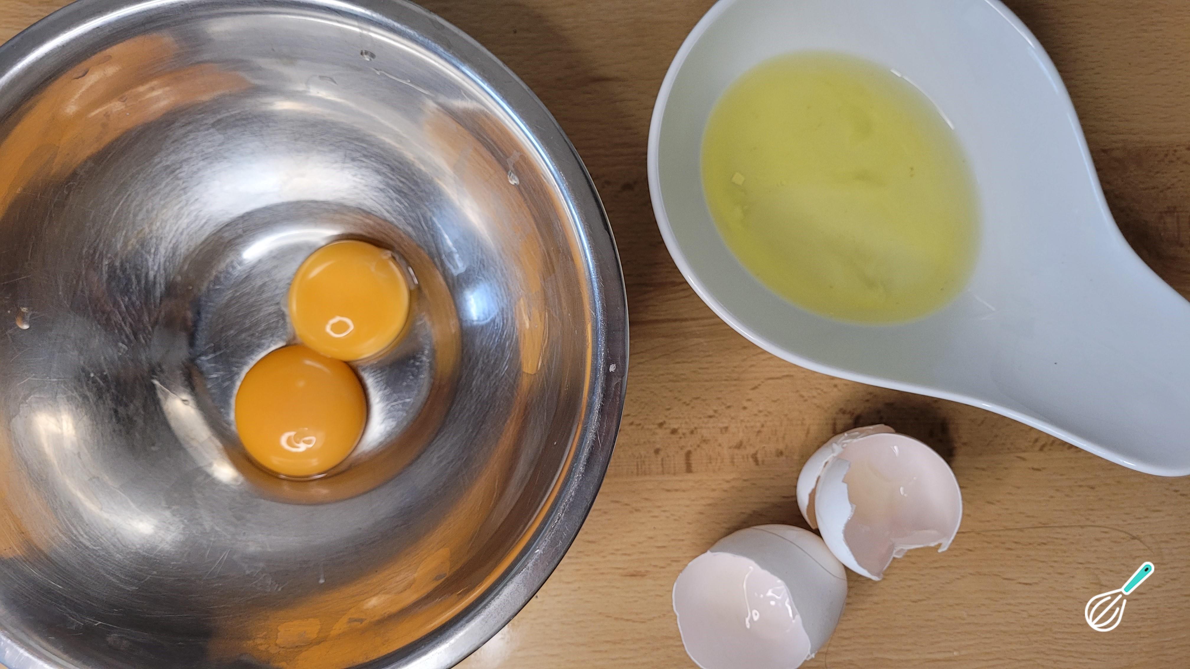 Separe as claras das gemas pois somente as gemas serão utilizadas nessa preparação.