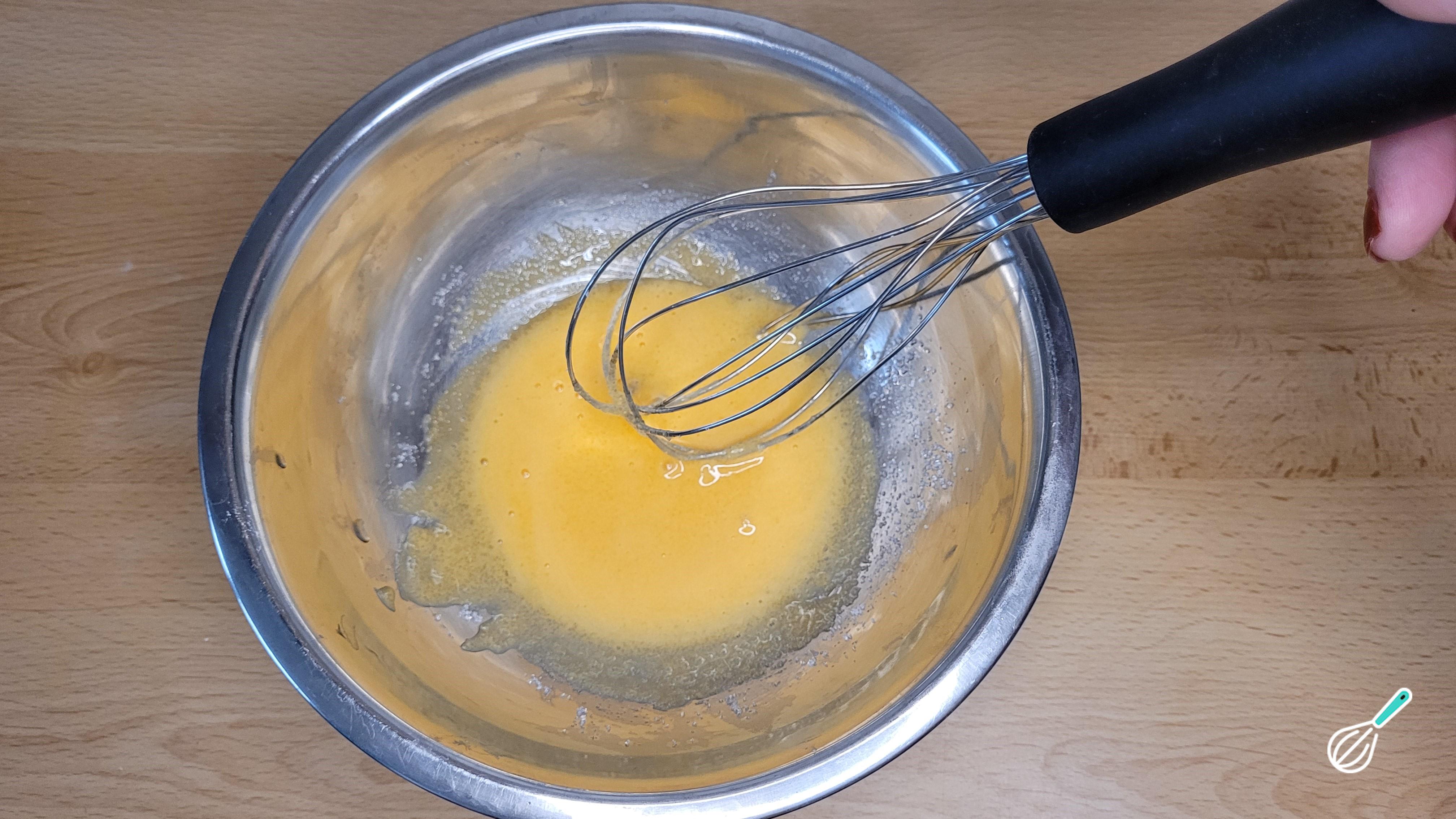 Enquanto isso, bata as gemas com o açúcar até obter um creminho espesso e de cor mais clara.