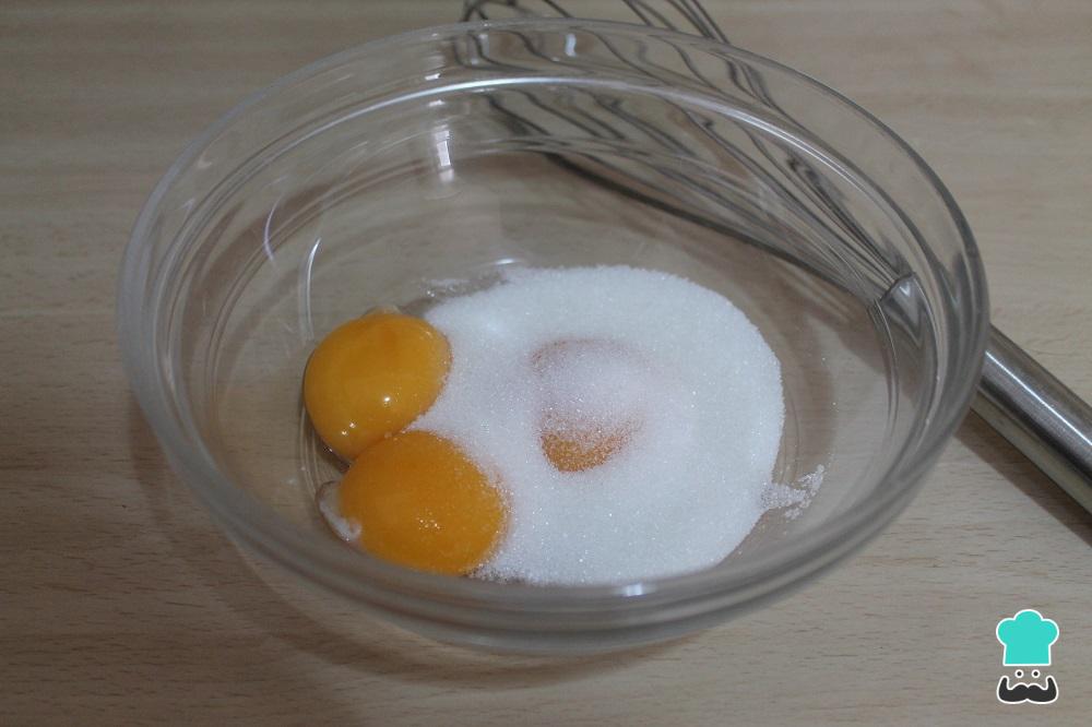 Numa tigela bata as gemas com o açúcar até obter um creme bem suave.