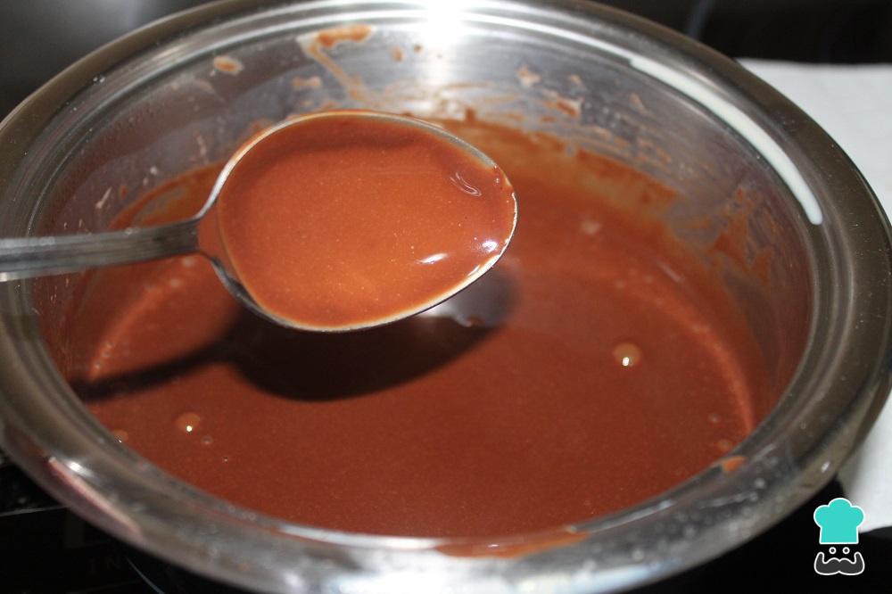 Fique mexendo este chocolate cremoso até ficar levemente espesso e, ao levantar a colher, observar que ele não escorre completamente dela, como na foto.