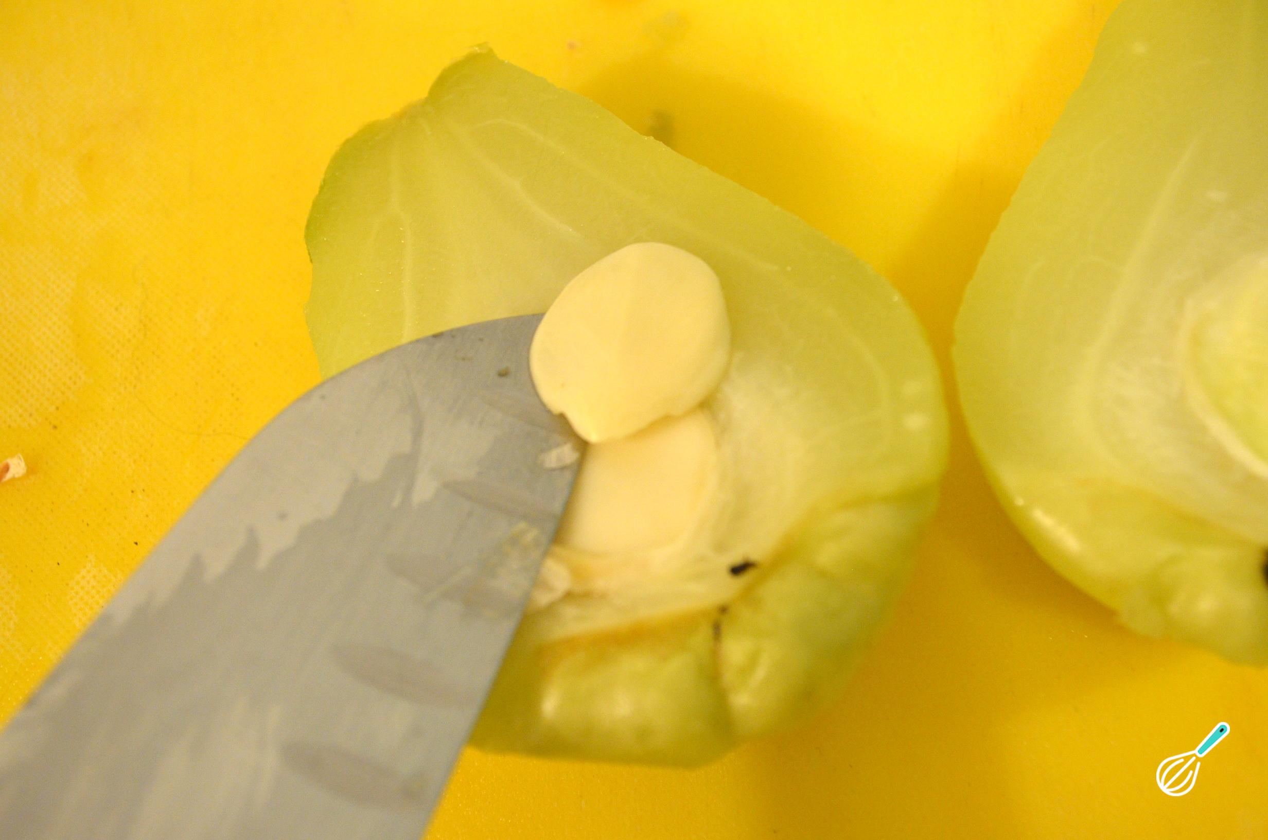 Corte o chuchu ao meio e retire a pepita que tem dentro.