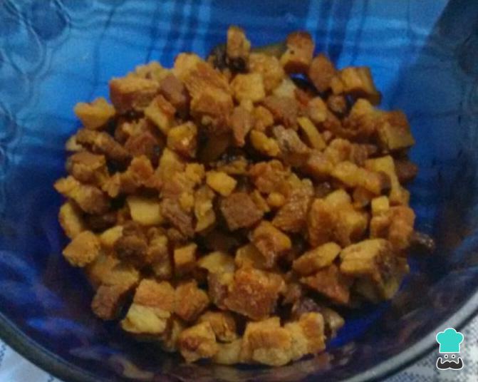 Corte o bacon em cubos, frite na própria gordura e reserve.