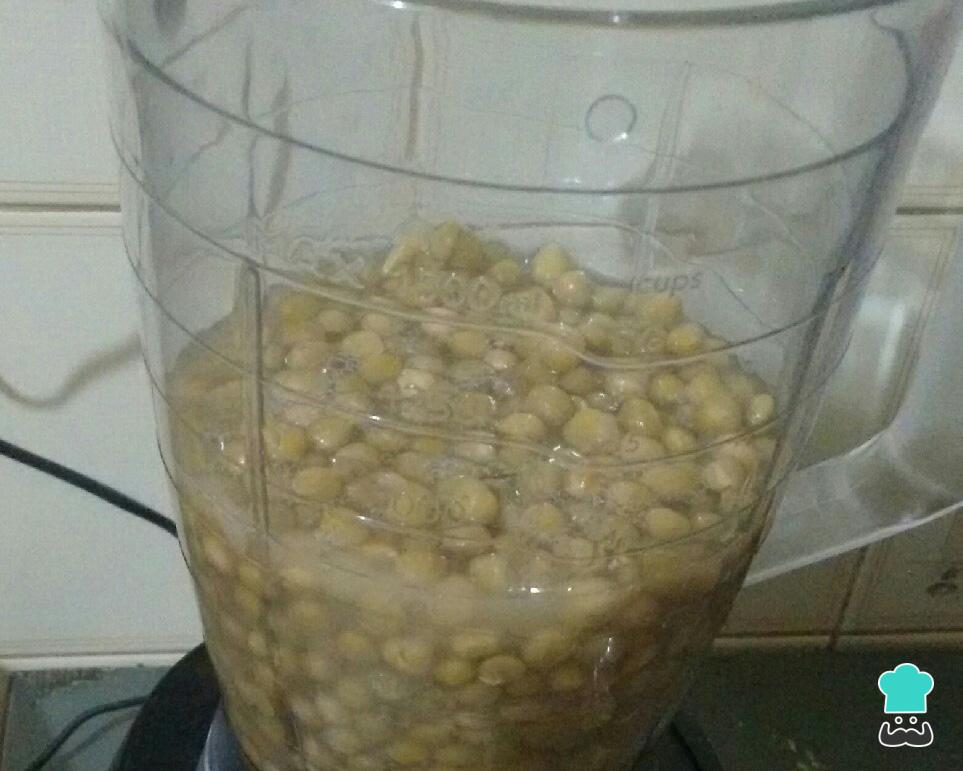 Enquanto refoga a cebola e o alho, bata no liquidificador a ervilha com o seu caldo. Você pode bater completamente ou deixar alguns pedaços, como preferir.