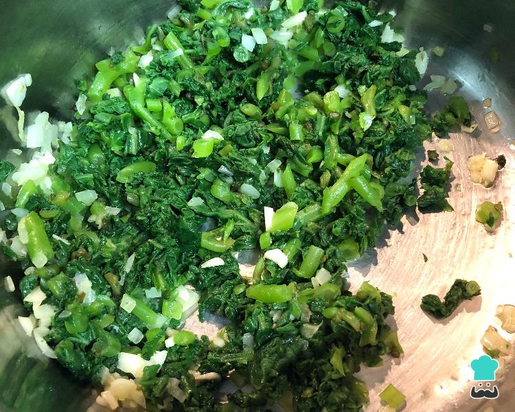 Quando a cebola estiver murcha adicione o espinafre picado e refogue mais 1 minuto.