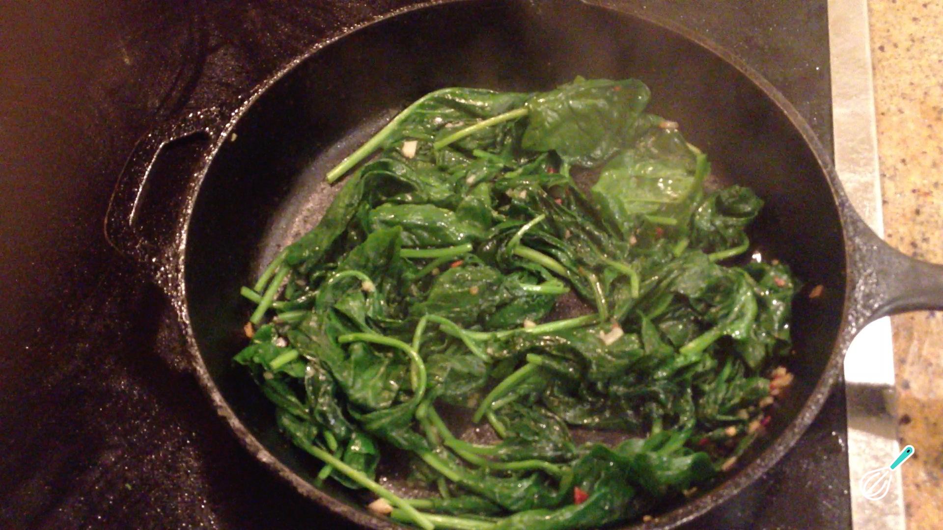 Para fazer um delicioso creme de espinafre fácil, comece por refogar o espinafre até que reduza. Junte a cebola e refogue mais um pouco.