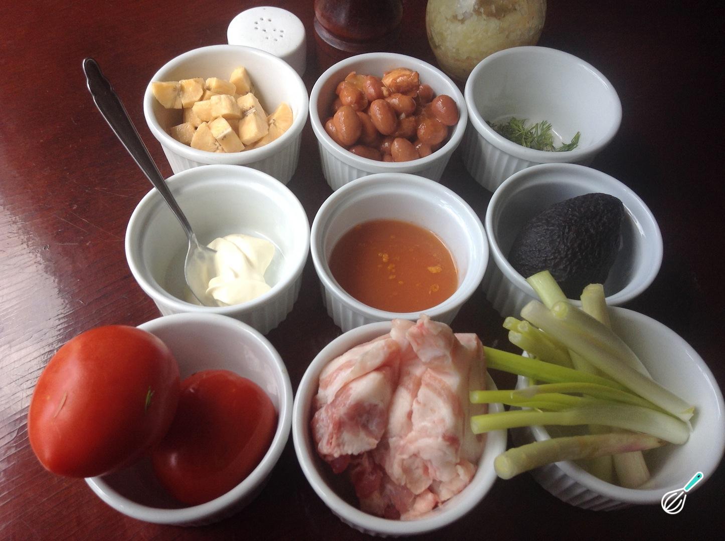 O primeiro passo para fazer este creme de feijões é juntar todos os ingredientes.