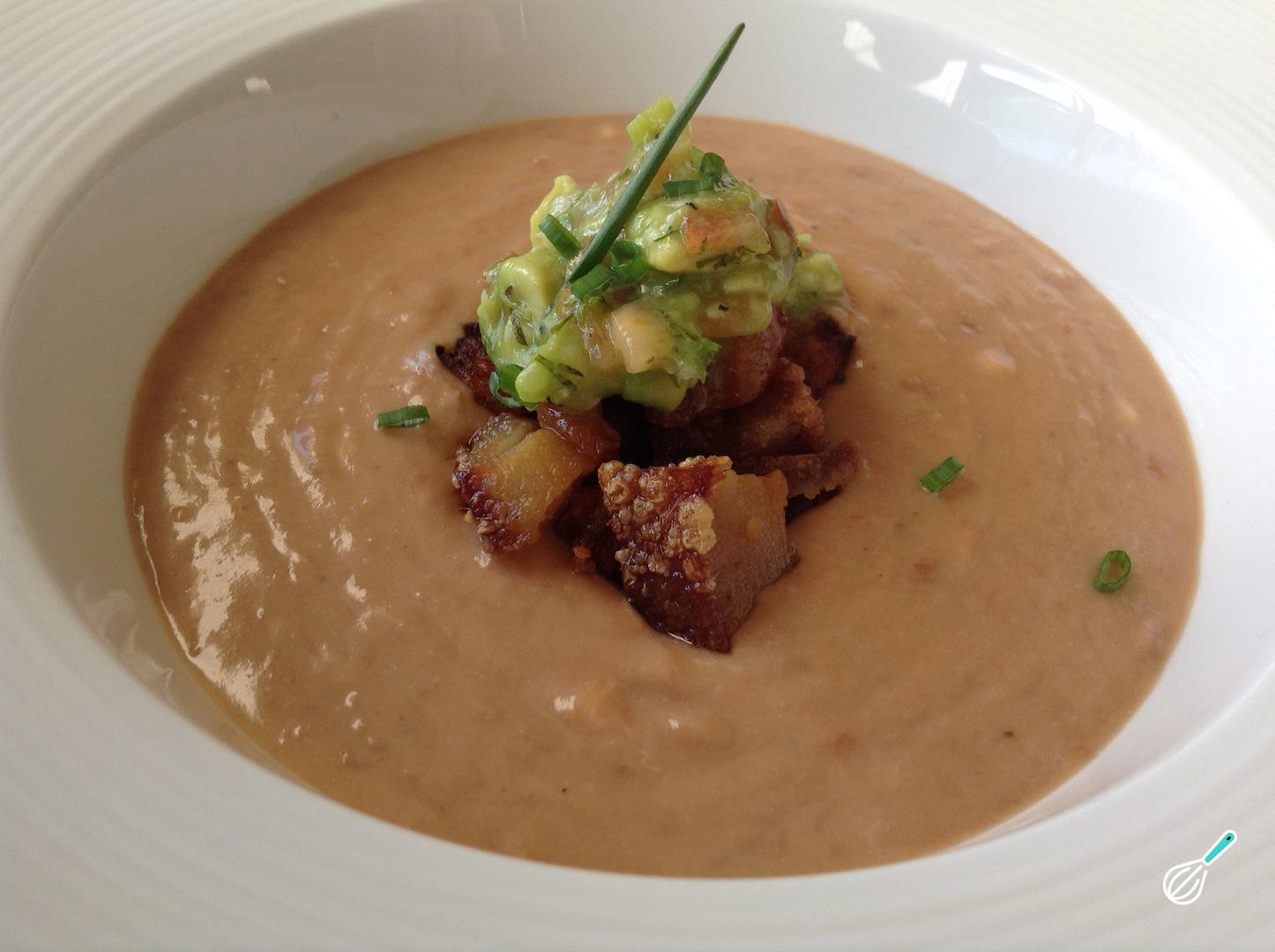 Finalmente sirva este creme de feijão mexicano adicionando os pedaços de toucinho ou bacon, a banana e o picadillo sobre ele. Para finalizar o prato, junte também o coentro picado ou cebolinha. Bom apetite e diga-nos o que achou desta receita!