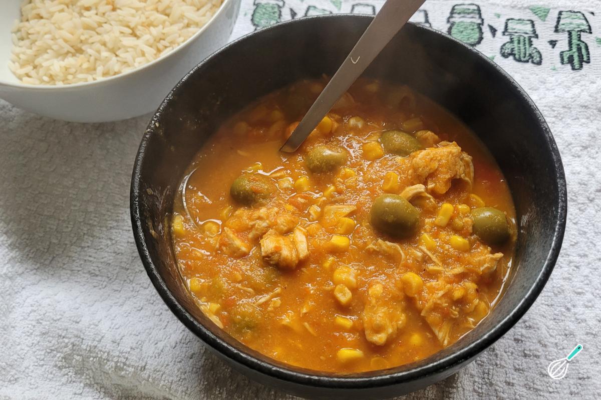 Seu creme de galinha está pronto para ser servido. Fica perfeito servido com arroz branco.