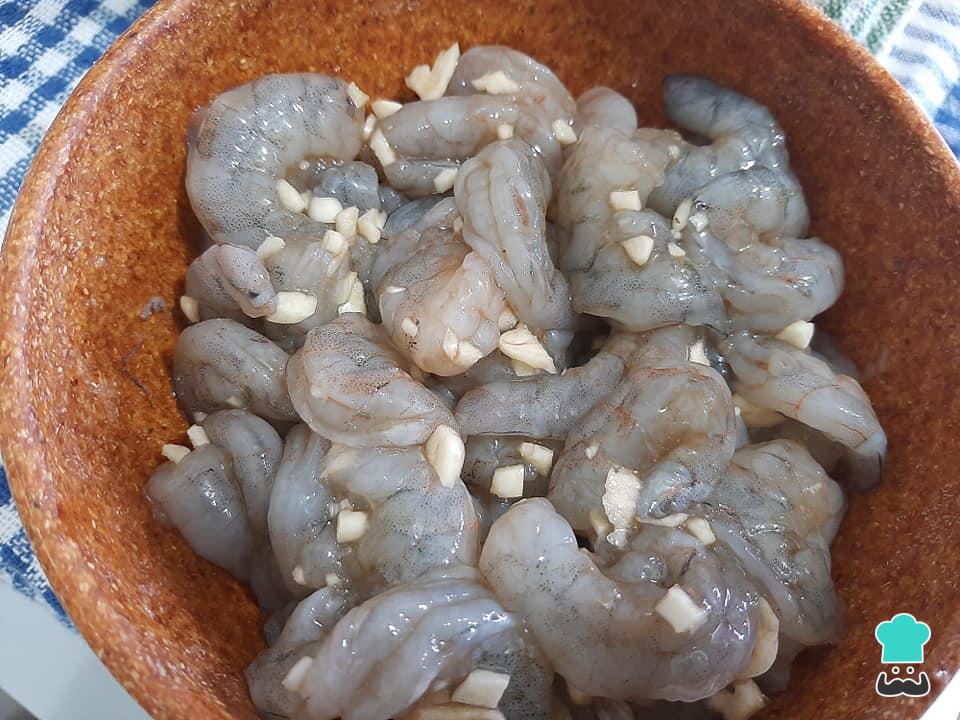 Limpe os camarões e reserve num bowl com sal, lemon pepper (ou páprica) e alho picado ou amassado, para pegar o gosto desses temperos.