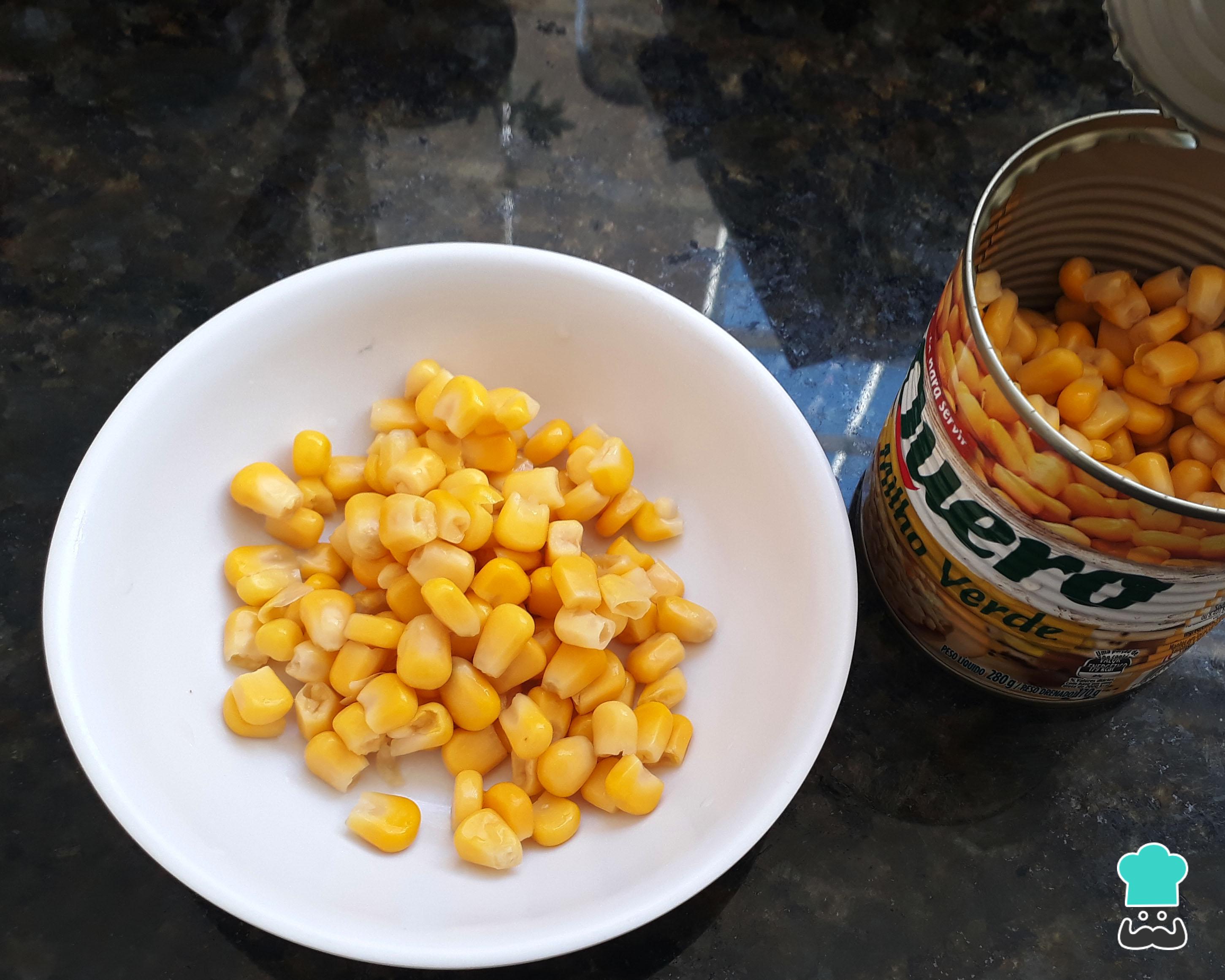 Comece por escorrer a água do milho. Se preferir sentir os grãos no meio do creme de milho, separe 2 colheres de sopa para serem colocadas no final. Se preferir um creme liso, apenas escorra a água.