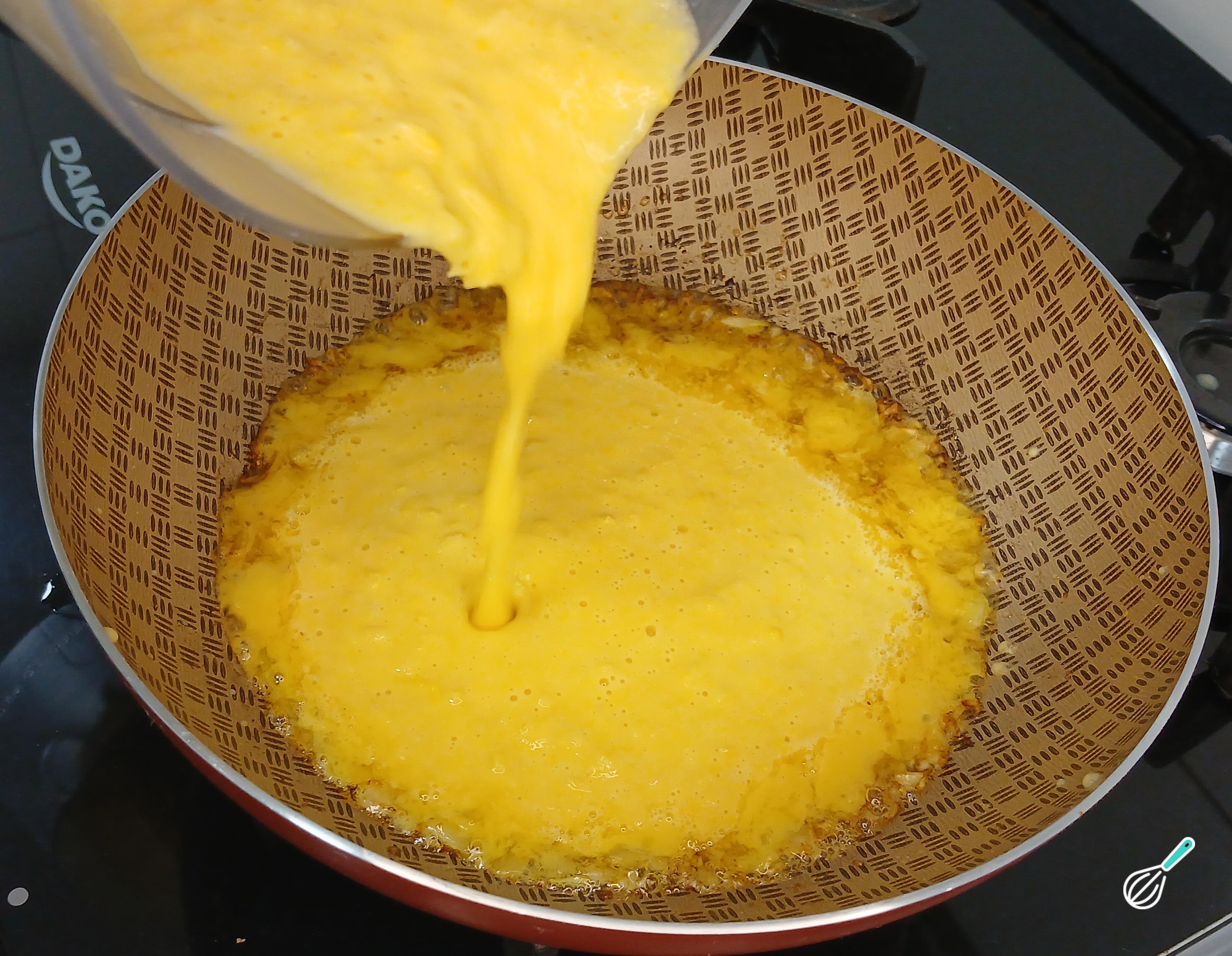 Com a cebola bem refogada, adicione o creme de milho batido.
