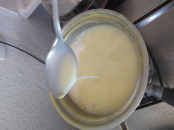 Leve ao fogo o milho coado e vá mexendo sempre para não encaroçar.