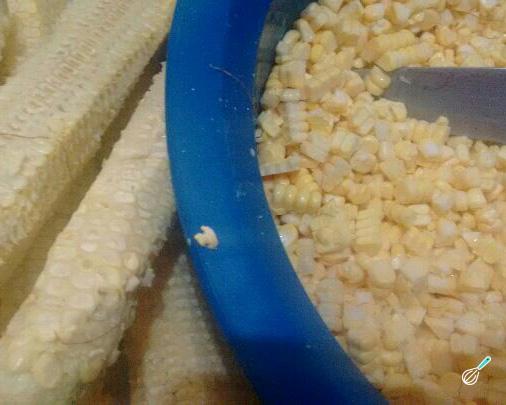 Com ajuda de uma faca raspe o milho das espigas.