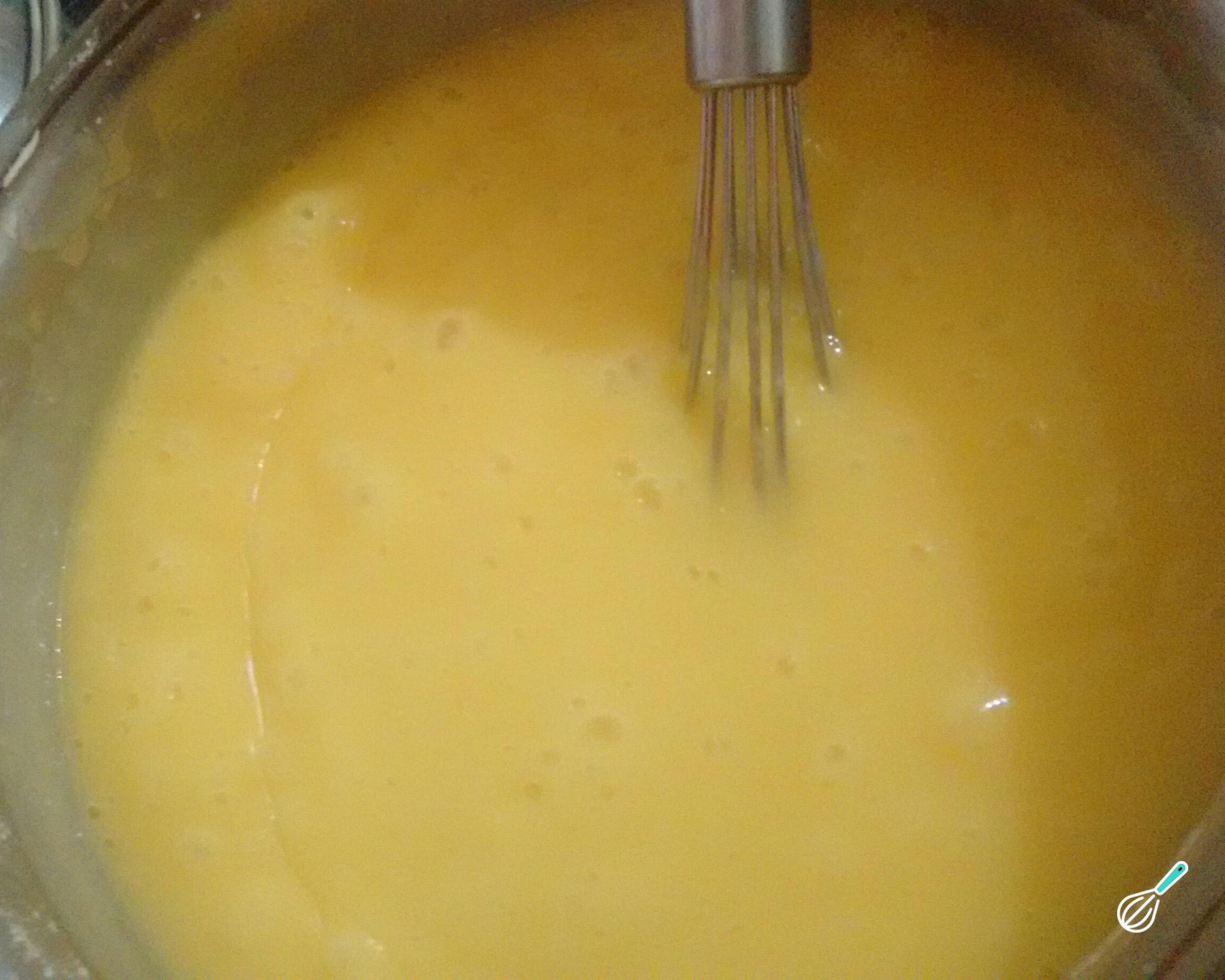 Quando começar a ferver, baixe o fogo e continue mexendo sem parar. Nessa hora você pode acrescentar um pouco mais de água caso queira creme de milho menos denso.