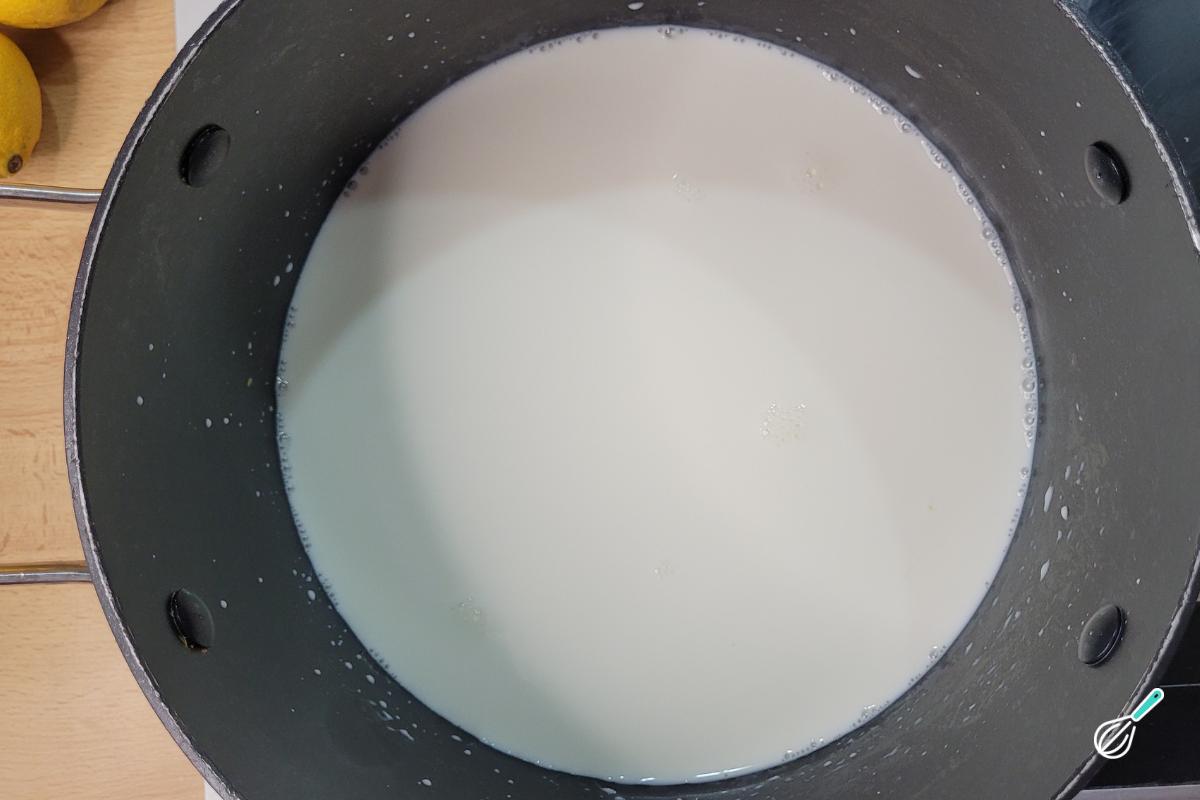 Quando o leite tiver começado a ferver, desligue o fogo e adicione o suco de limão. Mexa para misturar. Deixe repousar por cerca de 5 minutos.