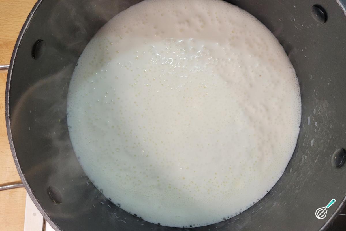 Coloque o leite em uma panela e ligue em fogo médio.