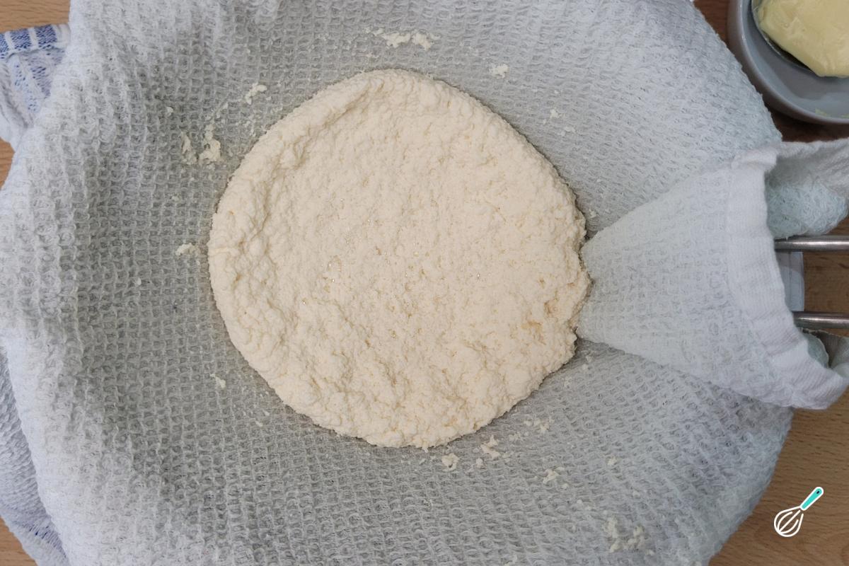 Você vai ver que o leite vai coagular e separar do soro. Caso isso não aconteça, volte a aquecer o leite e adicione mais suco de limão ou vinagre.